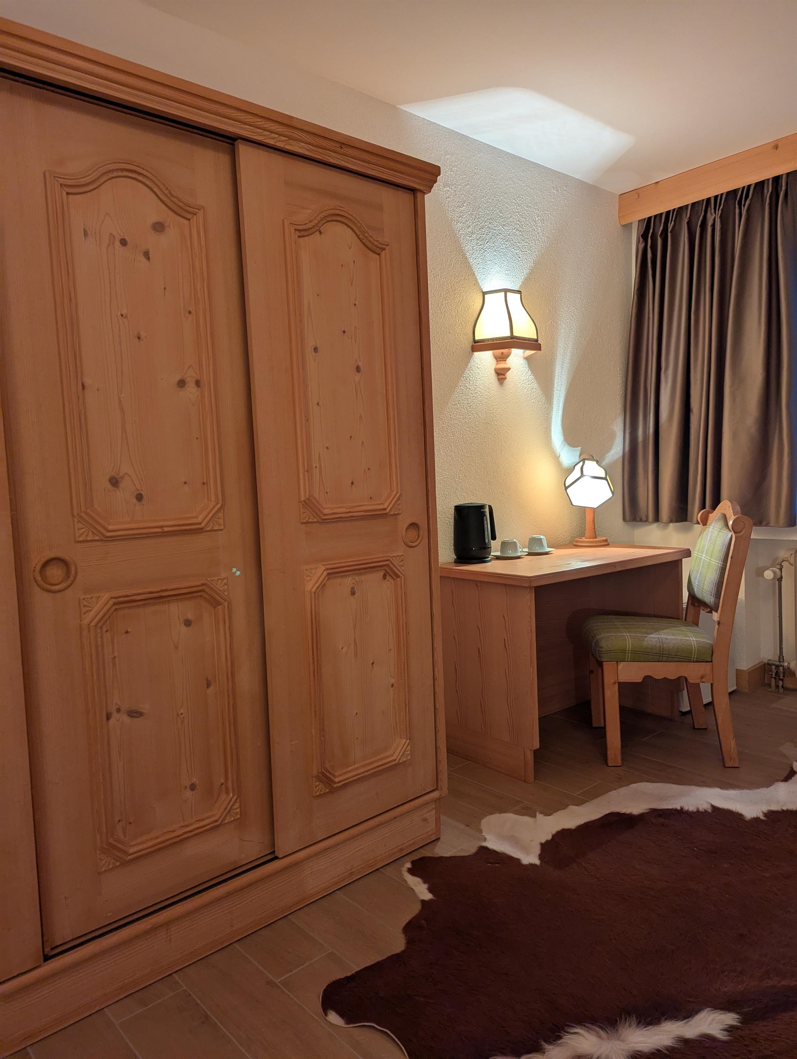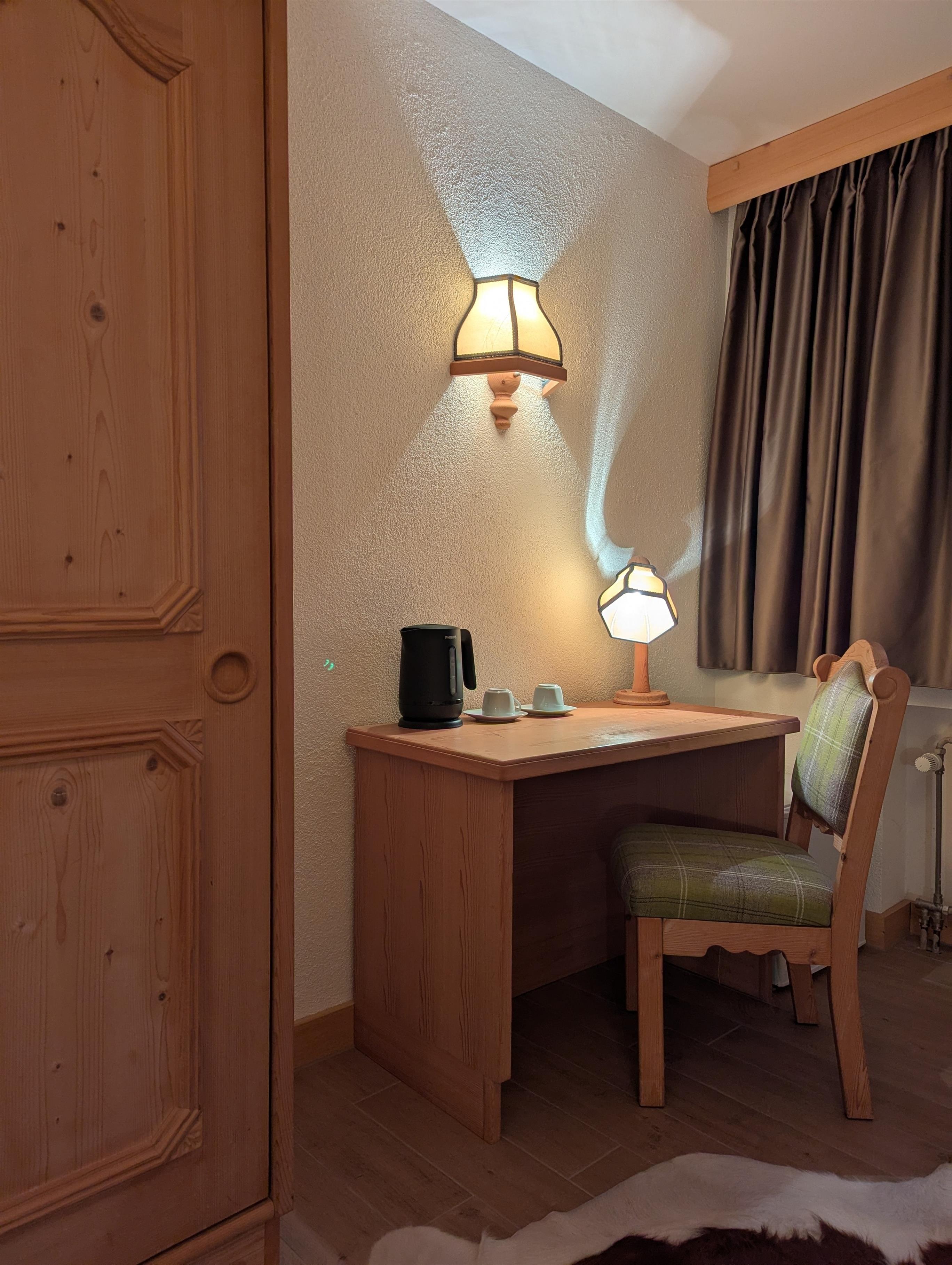 Das Zimmer ist außerdem mit einem Schreibtisch ausgestattet, perfekt für alle, die während ihres Aufenthalts eine ruhige Arbeitsmöglichkeit suchen.