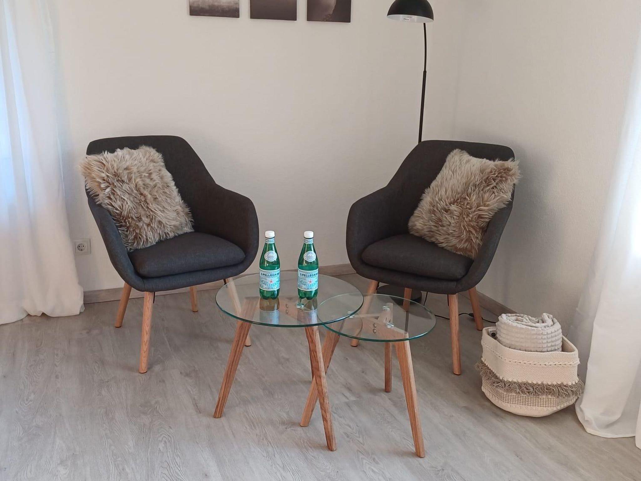 • Kleine Sitzecke mit 2 Stühlen und Tischchen