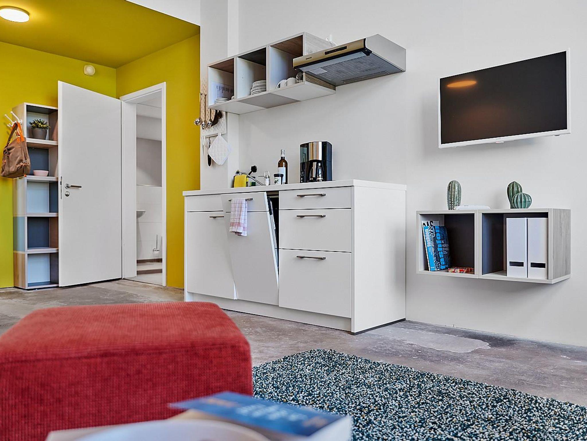 Wohn-Essbereich mit vollständig ausgestatteter Küche