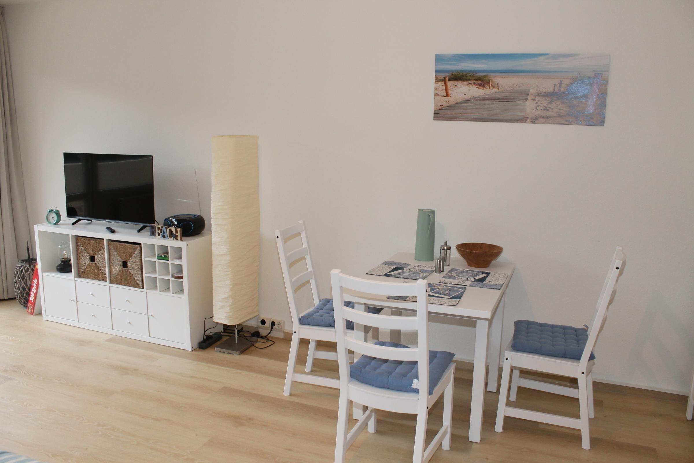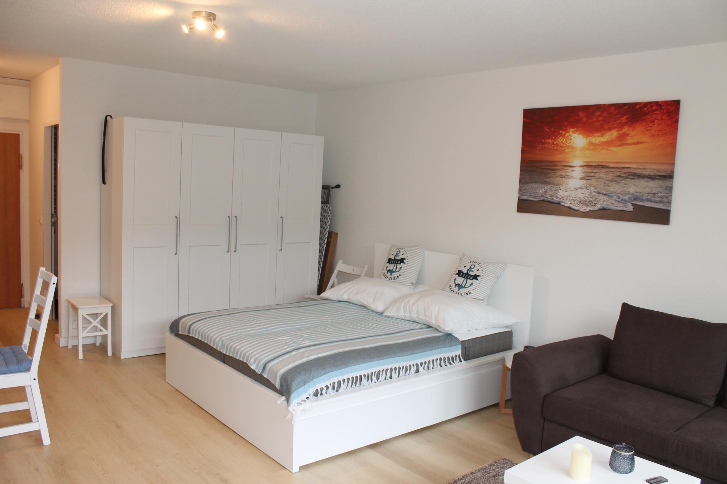 Das hell und freundlich wirkende Appartement (Ostseite) ist 40 m² groß und befindet sich auf der 1. Etage im Haus Kiel. Es ist mit einem großen Doppelbett und einem zusätzlichen Schlafsofa für max. 4 Personen geeignet.