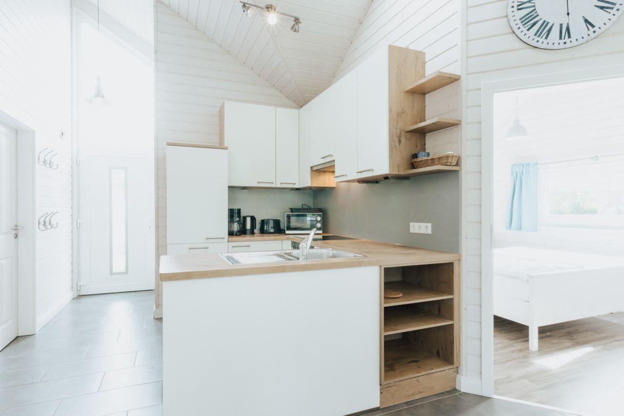 Die Küche ist umfassend ausgestattet und hält neben einem Geschirrspüler auch eine Mikrowelle für Sie bereit. Wohn- und Essbereich sind lichtdurchflutet und bieten auch 6 Personen genügend Platz zum gemeinsamen Essen und Verweilen.