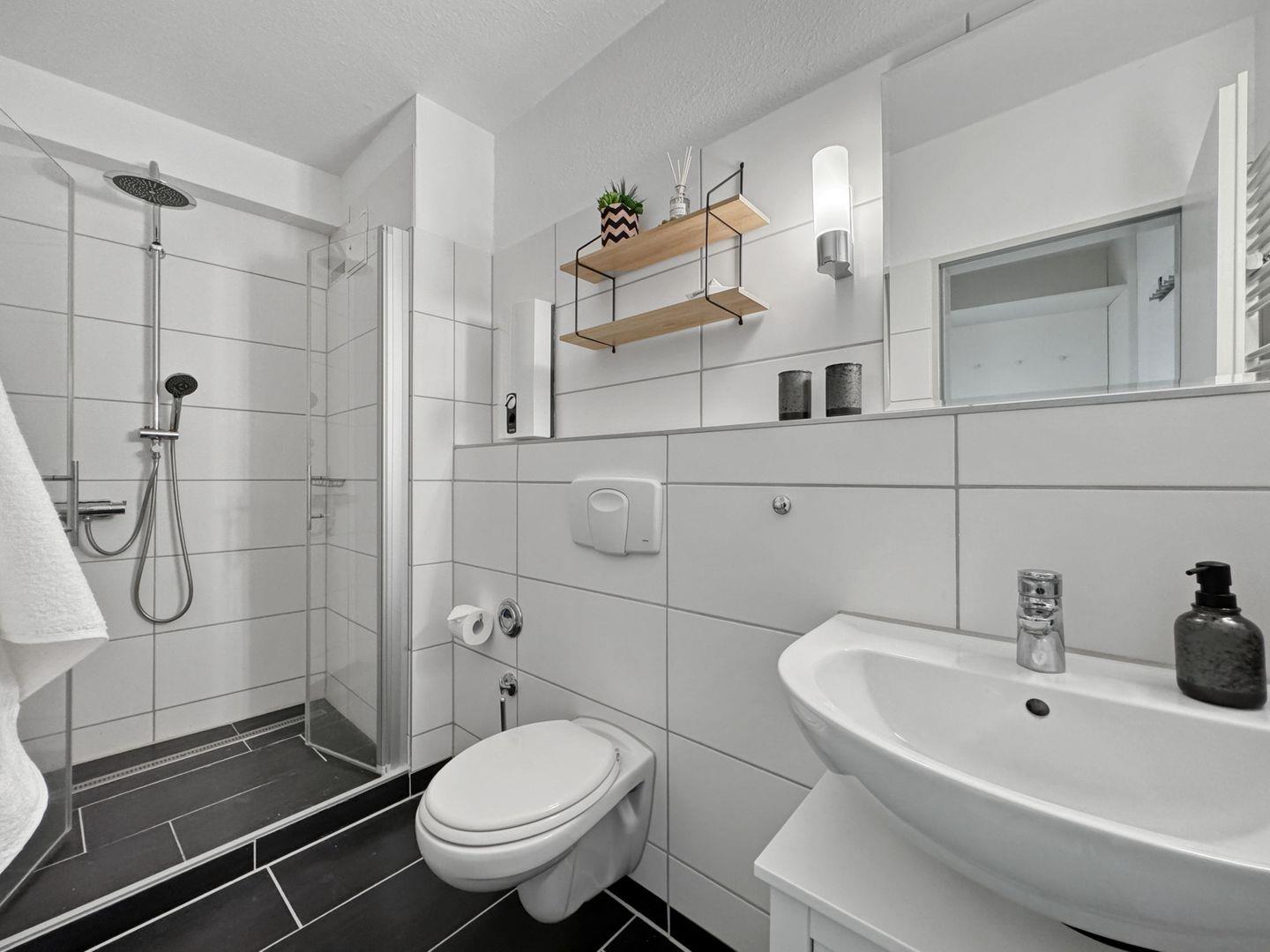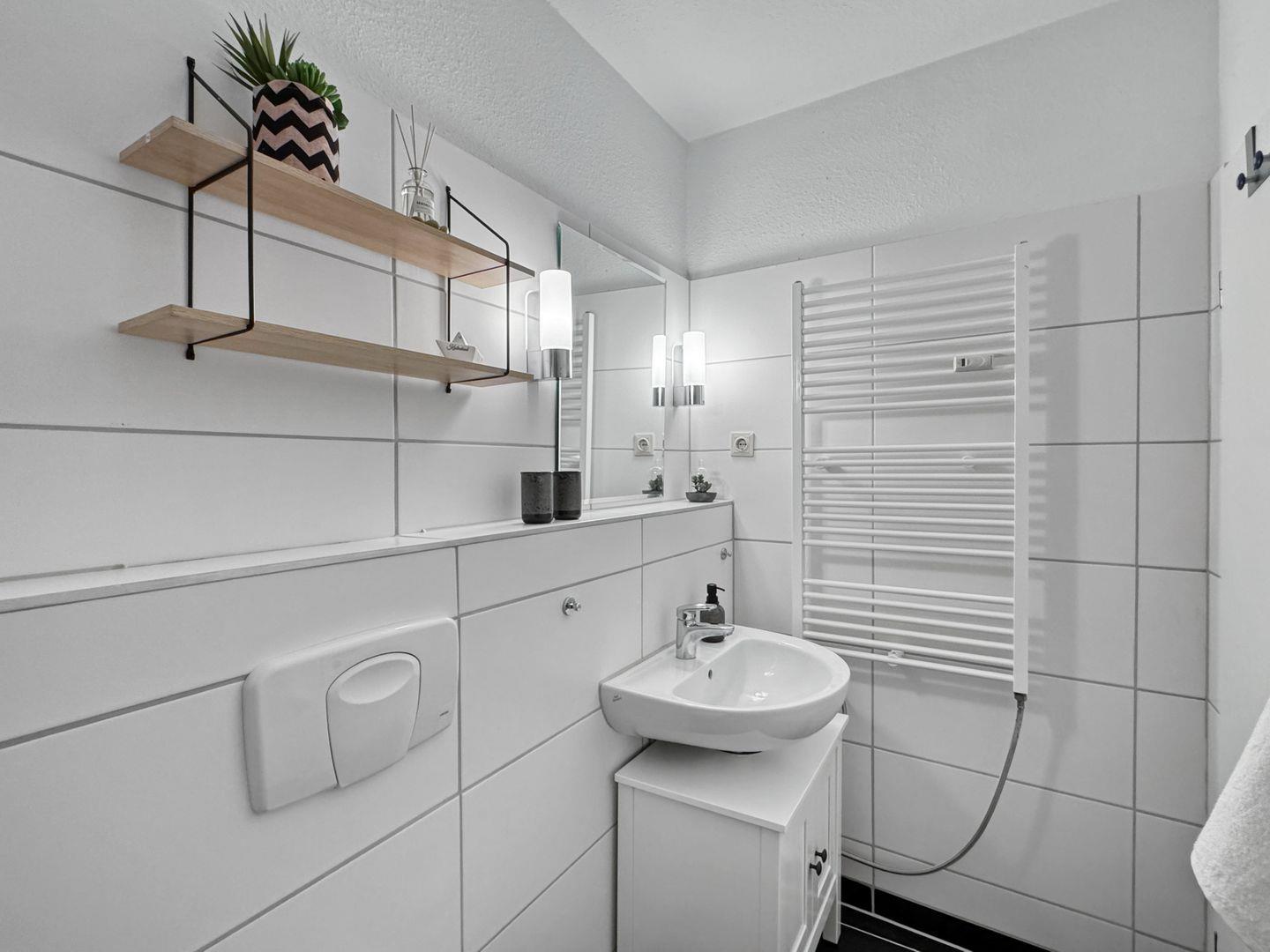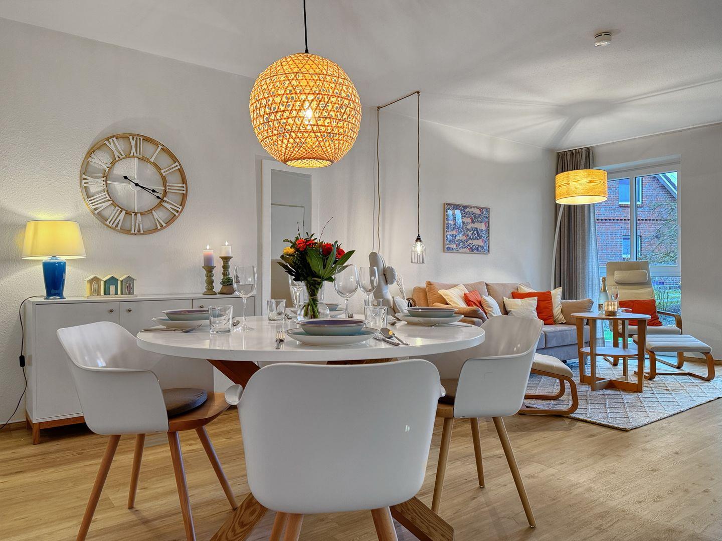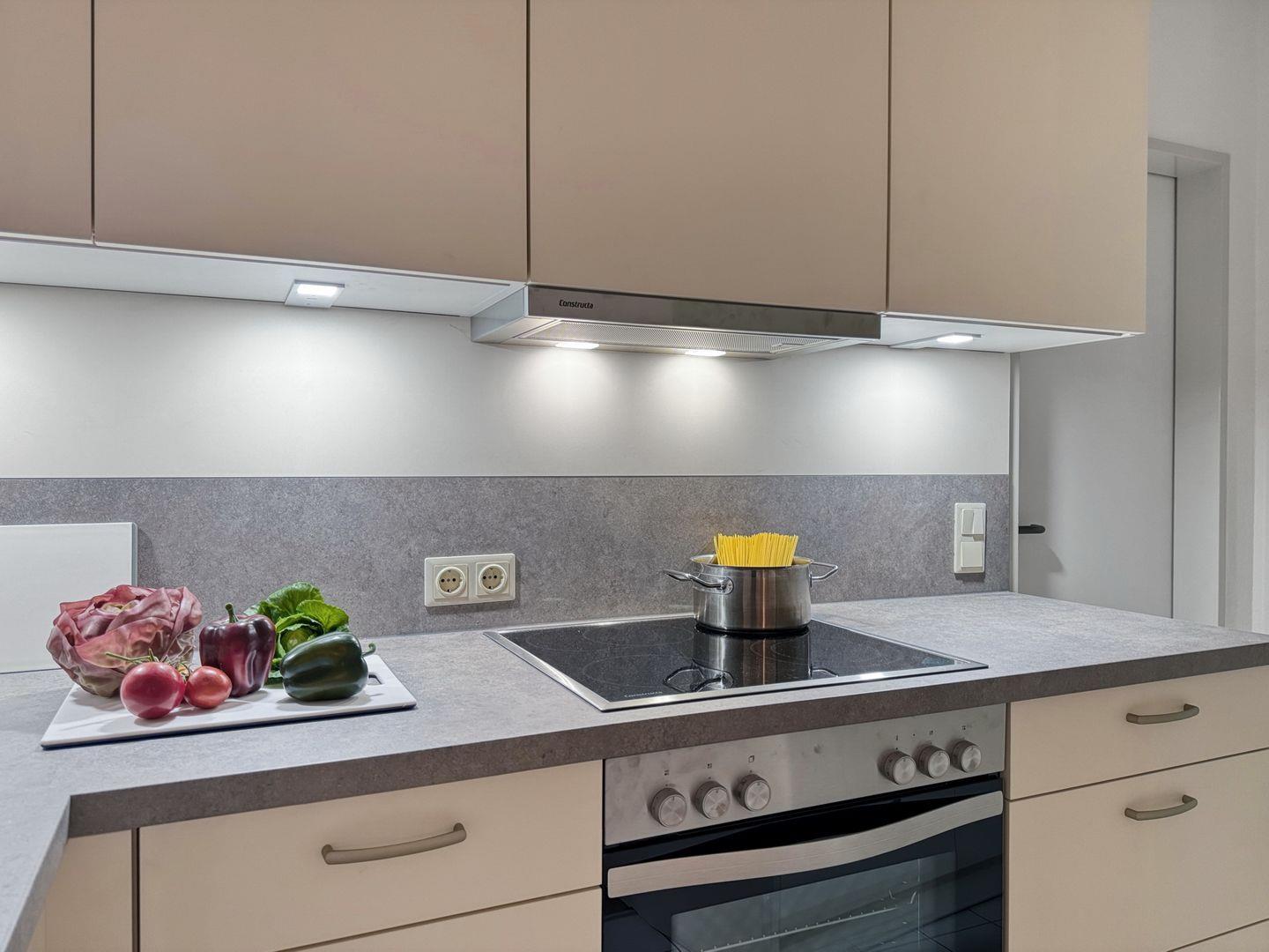 Die Wohnung verfügt über eine voll ausgestattete, offene Küche, in der Sie die Möglichkeit haben, selbst zu kochen. Ausgestattet mit einem modernen Herd, Backofen, Geschirrspüler und Kühlschrank stehen Ihnen alle Annehmlichkeiten zur Verfügung, um Ihre kulinarischen Fähigkeiten auf die Probe zu stellen. Der Essbereich bietet Ihnen Platz, um gemeinsam zu essen und den Tag Revue passieren zu lassen.