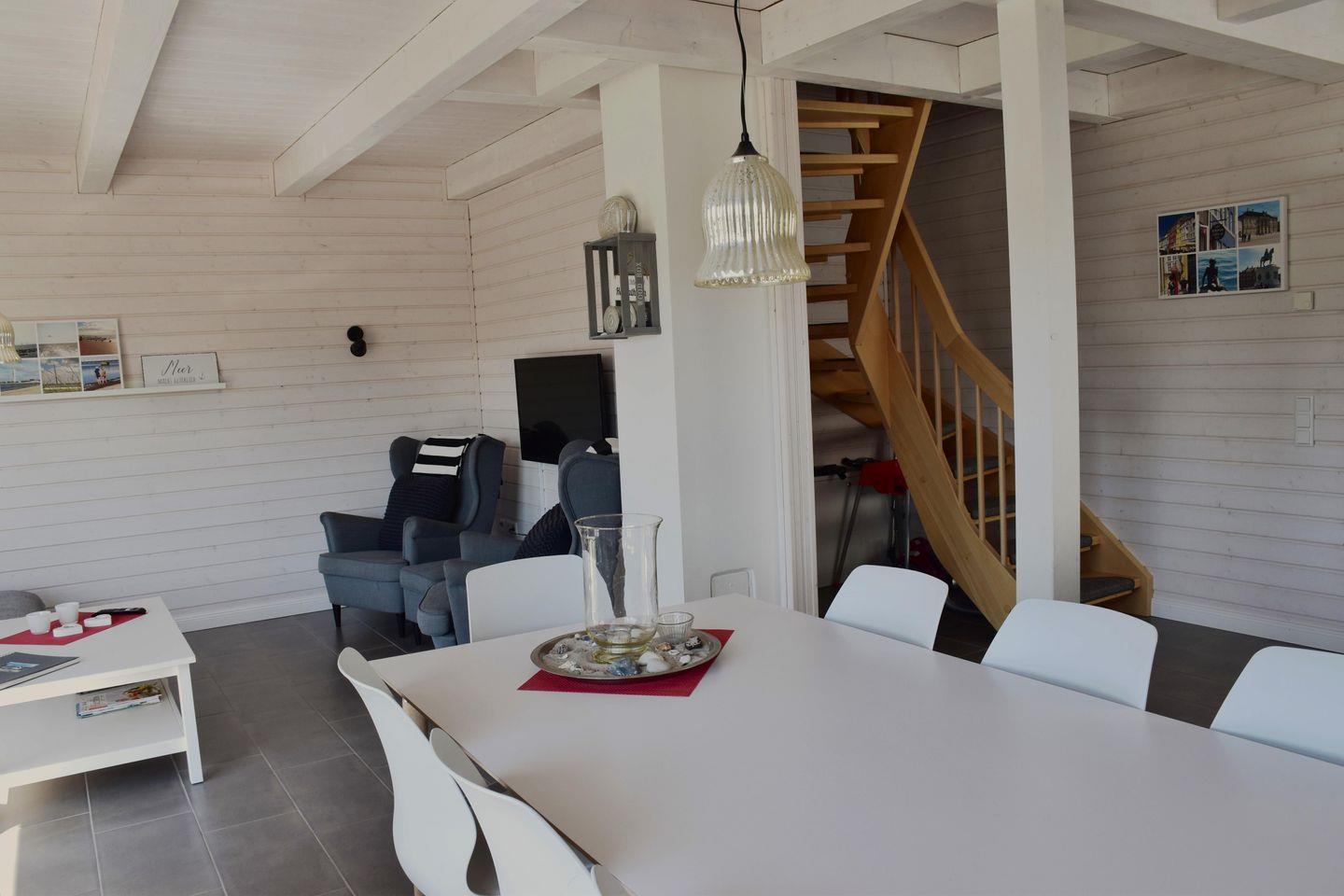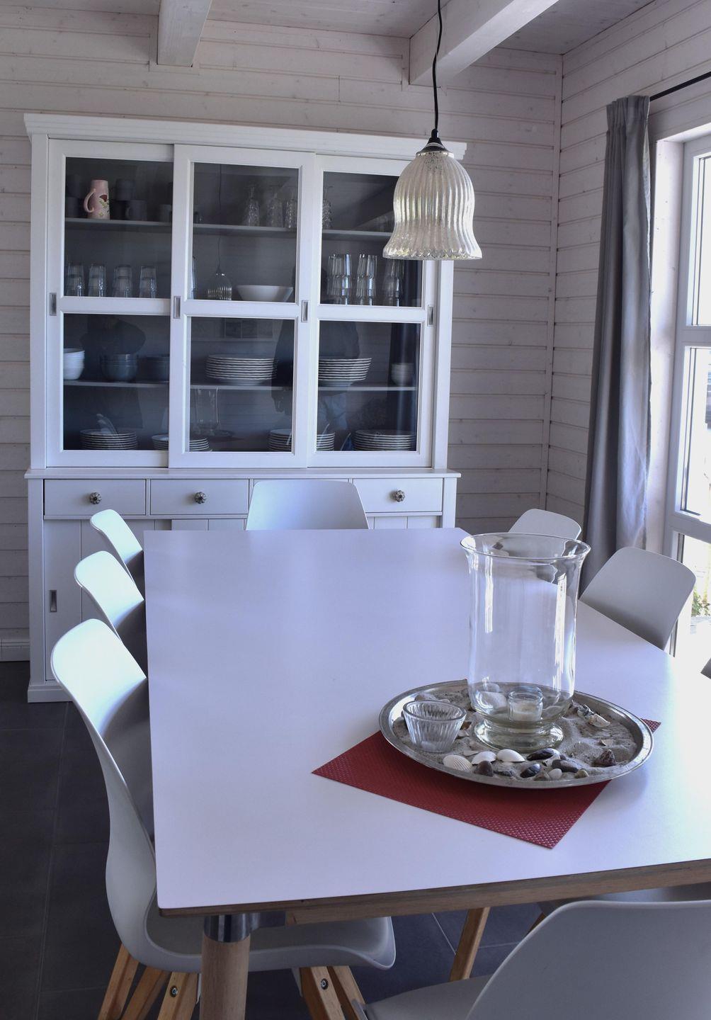 Die Küche ist umfassend ausgestattet und hält einen Geschirrspüler für Sie bereit. Wohn- und Essbereich sind lichtdurchflutet und bieten auch 8 Personen genügend Platz zum gemeinsamen Essen und Verweilen.