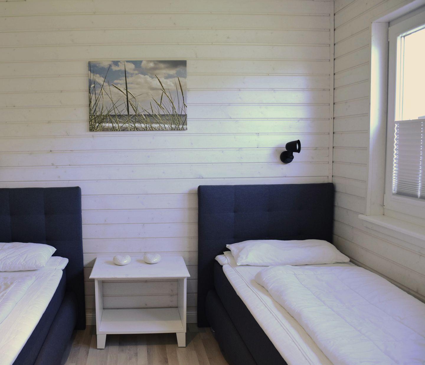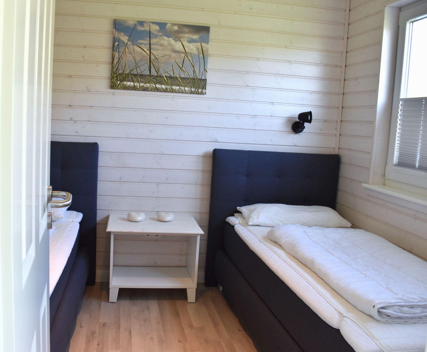 Im Erdgeschoss befindet sich ein Schlafzimmer mit zwei Einzelbetten. Diese Betten bieten eine angenehme Höhe für Menschen, die einen komfortablen Betteinstieg bevorzugen. Des Weiteren finden Sie ein Schlafzimmer mit zwei Einzelbetten und zwei Schlafzimmer mit Doppelbetten im Obergeschoss vor. Ihnen stehen zwei Stellplätze für Ihre PKW zur Verfügung.
