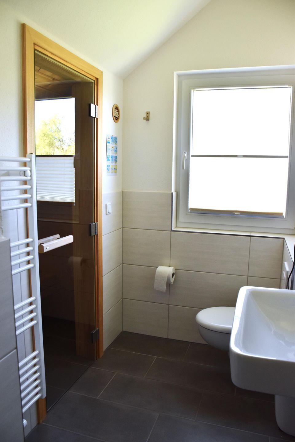 Die Sauna, im oberen Badezimmer bietet auch im Winter Gemütlichkeit und lässt direkt Urlaubsfeeling aufkommen.