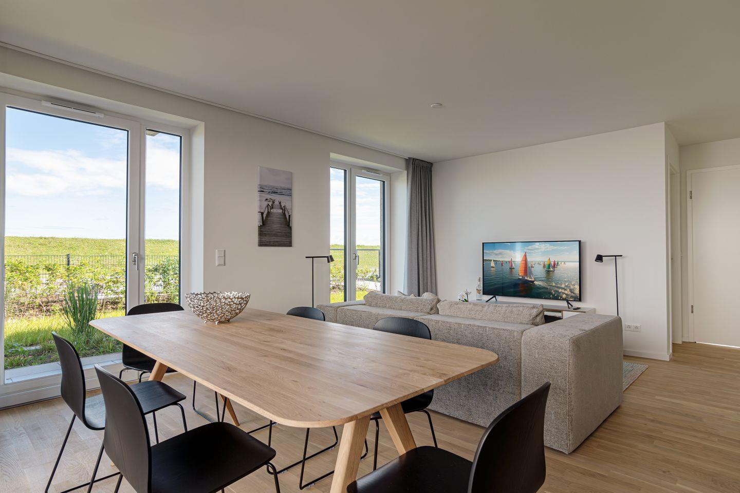 Willkommen in der Ferienwohnung "Strandlounge" in Schönberg - Kalifornien, Ihrem idealen Rückzugsort an der Ostsee! Mit einer großzügigen Fläche von 85 m² bietet diese moderne Unterkunft Platz für bis zu vier Personen und ist somit ideal für Familien oder Paare, die eine entspannte Zeit direkt am Meer erleben möchten.