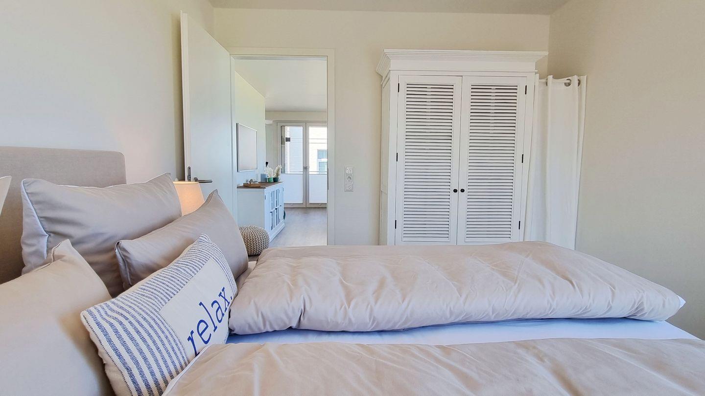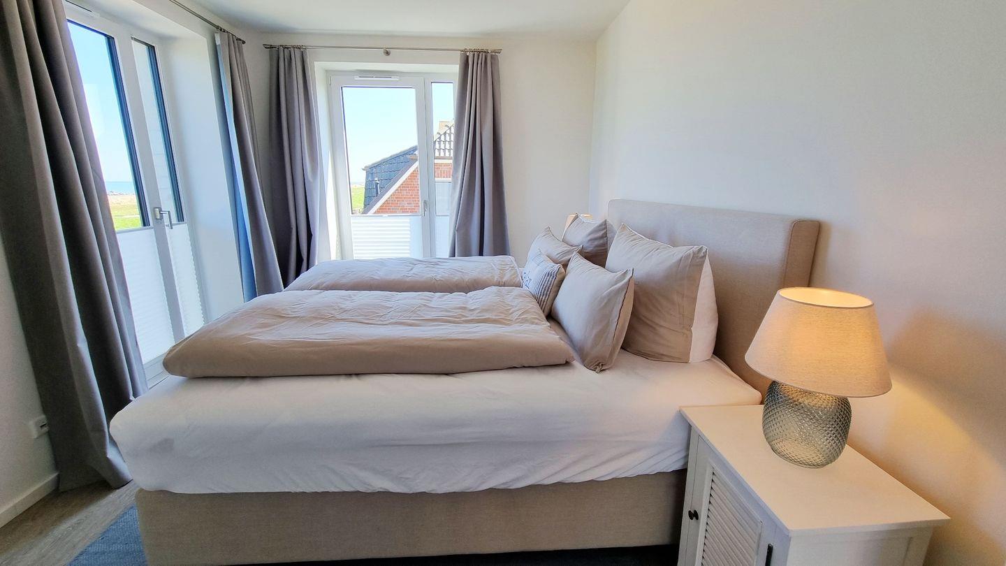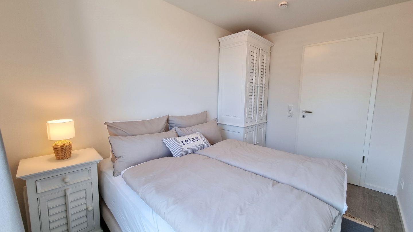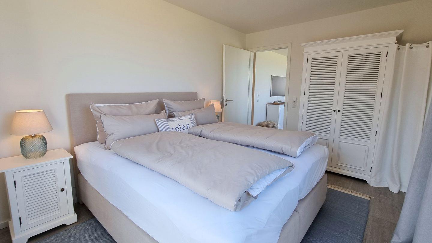 Schlafzimmer I: Boxspring Doppelbett (180x200) / Schrank / Plissees /direkter Meerblick