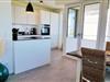 Wohn- Essbereich: Zweisitzer Couch / 2 Sessel / Fernseher / Esstisch / 4 Stühle / direkter Meerblick