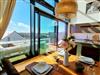 Loggia: zwei Hochlehner-Stühle / Tisch / Meerblick / schiebbare Fensterelemente