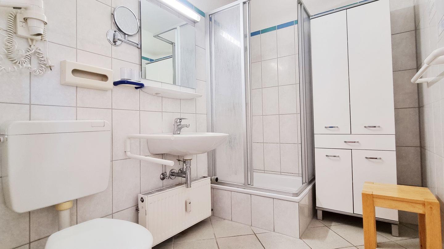 Badezimmer: Dusche / Waschbecken / WC / leistungsstarker Föhn