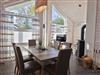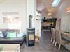 Wohn- Essbereich: gemütliche Eckcouch / Fernseher / Kaminofen / Esstisch / 6 Stühle / große Fensterfronten