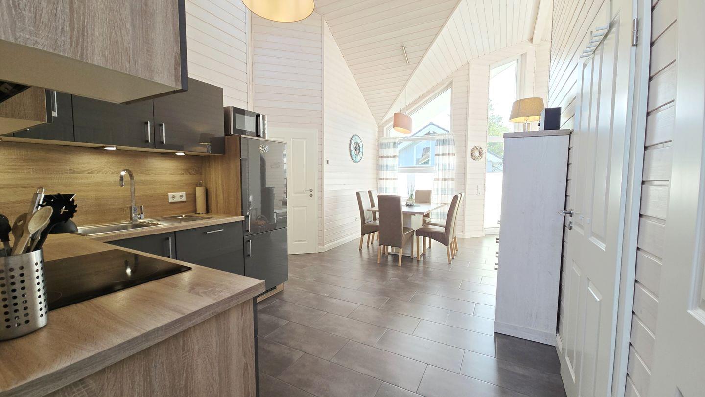 In einer ruhigen Lage im Ferienpark Holm, nur wenige Minuten von den herrlichen Sandstränden der Ostsee entfernt, erwartet euch eine erholsame und unvergessliche Zeit. Genießt die durchdachte Raumaufteilung des Hauses, das mit viel Liebe zum Detail eingerichtet ist. Das Wohnzimmer lädt zu gemeinsamen Abenden am Kaminofen ein, während die offene Küche alles bietet, was für ausgiebige Kochaktivitäten benötigt wird.