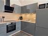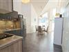 Küche: offene Küche mit Hochglanzfronten / Cerankochfeld / Dunstabzugshaube / Backofen / Geschirrspüler / Toaster / Filterkaffeemaschine / Wasserkocher / Kühlschrank mit Gefrierfach / Mixer