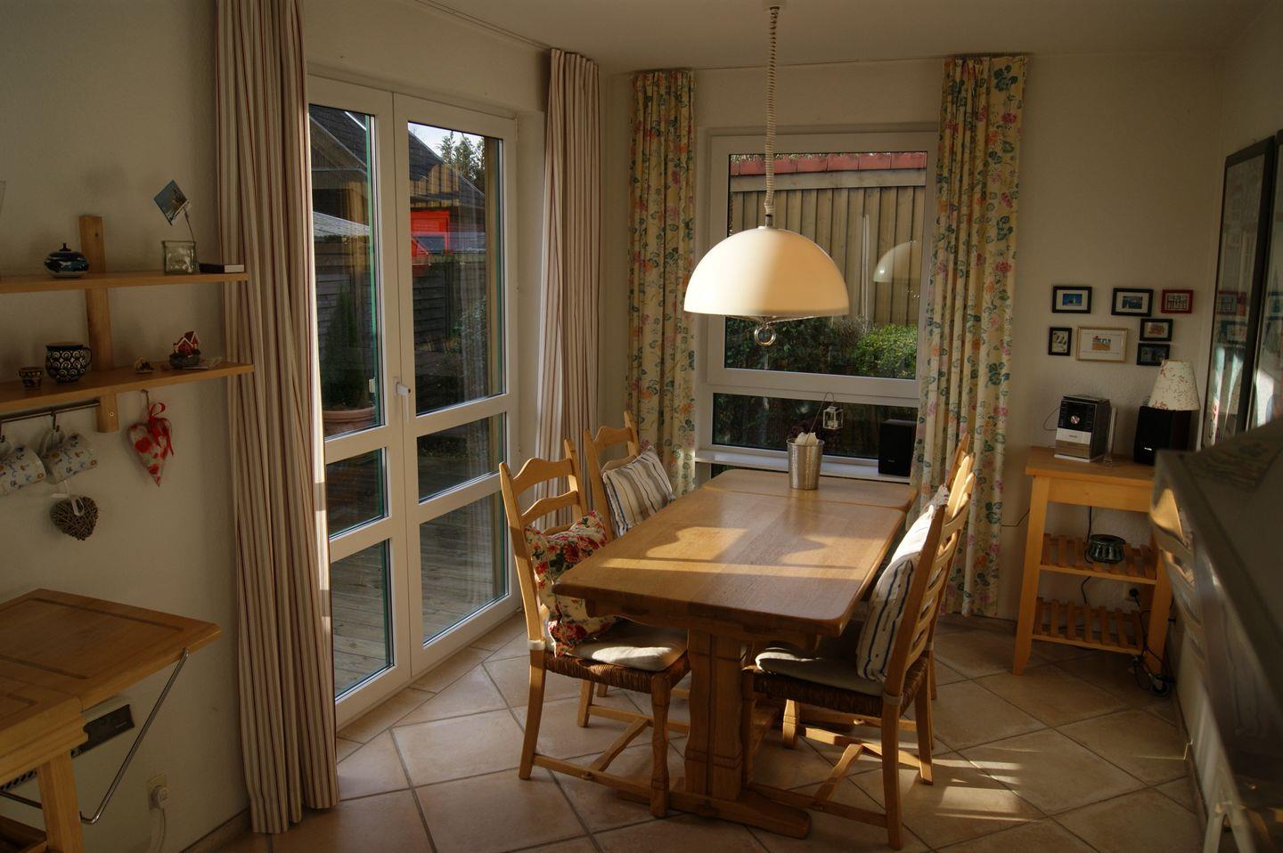 Im Inneren erwartet Sie ein einladender offener Küchen- und Essbereich. Die komplett eingerichtete Küche bietet Ihnen alles, was Sie für die Zubereitung köstlicher Mahlzeiten benötigen. Von der Mikrowelle über den 4-Platten-Herd bis hin zur Spülmaschine ist alles vorhanden. Genießen Sie gemeinsame Mahlzeiten am Esstisch mit vier Stühlen und lassen Sie den Abend gemütlich im Wohnzimmer ausklingen.