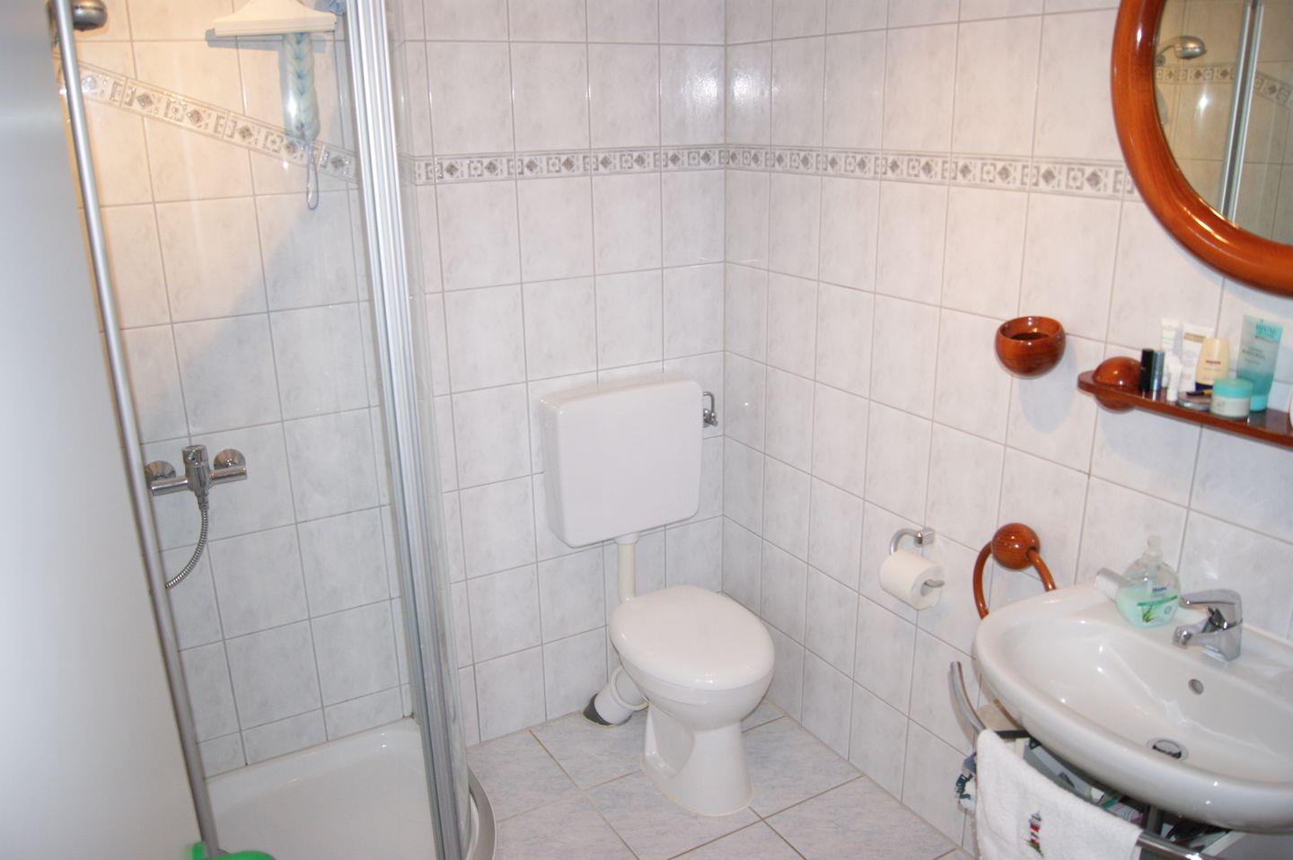 Das Duschbad im Erdgeschoss rundet das Angebot ab. Hier finden Sie eine erfrischende Dusche, ein Waschbecken, ein WC und einen Fön für Ihre persönliche Pflege.