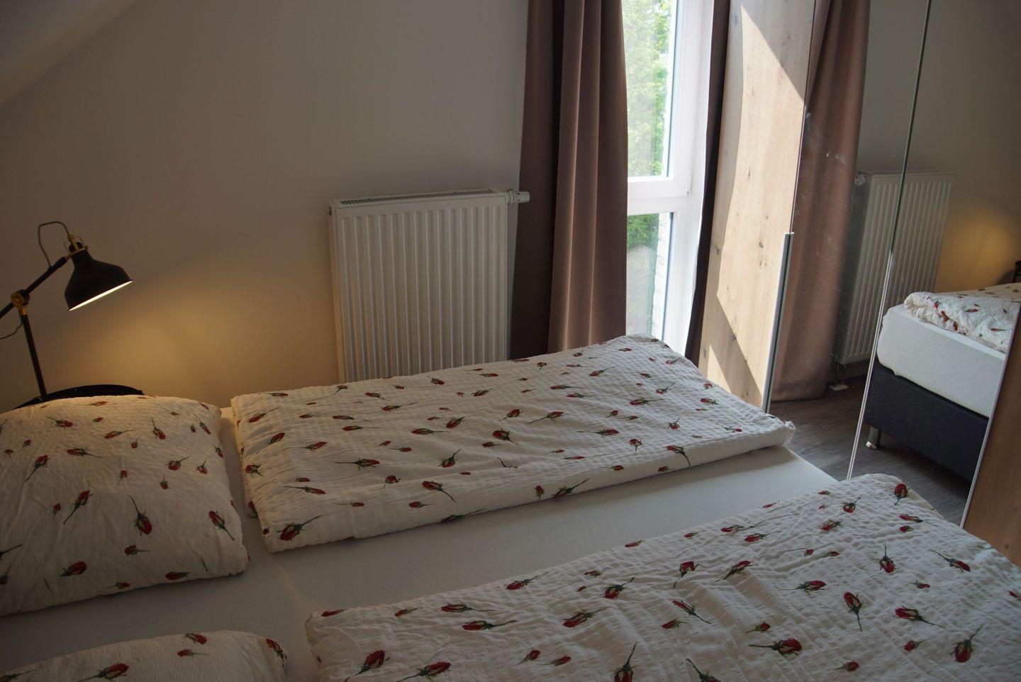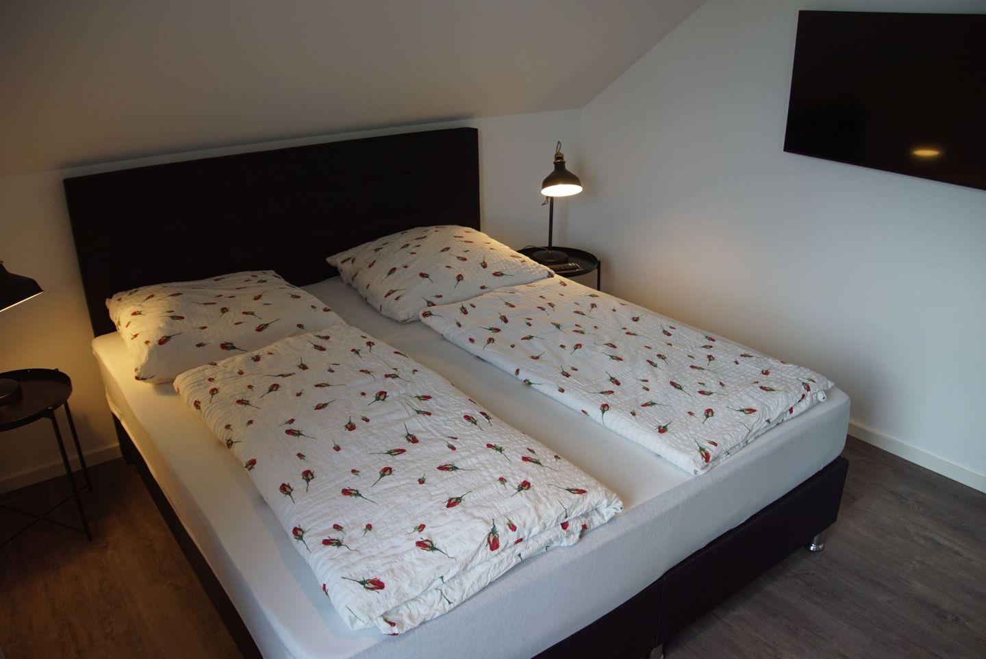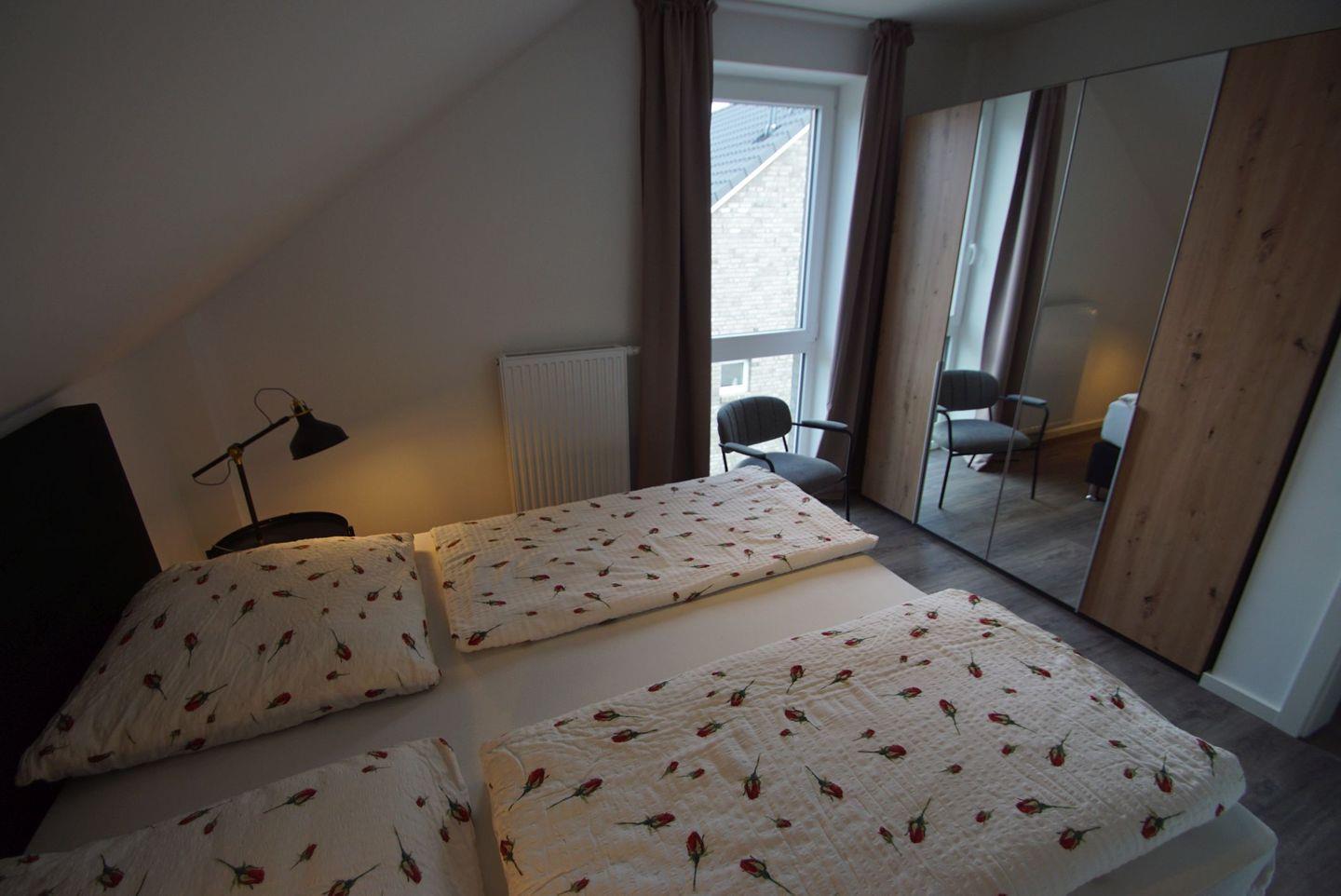 Insgesamt stehen Ihnen drei geschmackvoll eingerichtete Schlafzimmer zur Verfügung. Das erste Schlafzimmer im Obergeschoss verfügt über ein komfortables Doppelbett mit einer großen Matratze, einen geräumigen Kleiderschrank und einen Fernseher. Das zweite Schlafzimmer bietet Ihnen denselben Komfort und Stil. Im dritten Schlafzimmer steht ebenfalls ein Doppelbett mit einer großen Matratze und ein Kleiderschrank bereit.