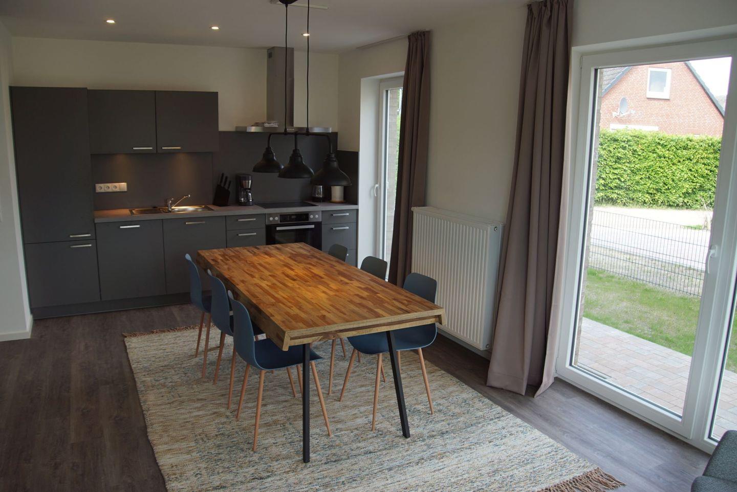 Der Innenbereich des Objekts ist ebenso beeindruckend. Die offene Küche, der Essbereich und das Wohnzimmer bilden einen großzügigen und gemütlichen Raum. Die Einbauküche ist komplett ausgestattet und lässt keine Wünsche offen. Egal, ob Sie eine Mahlzeit zubereiten oder einen Kaffee zubereiten möchten, Sie finden alles, was Sie brauchen, einschließlich Herd, Backofen, Spülmaschine, Kühlschrank mit Gefrierfach, Kaffeemaschine, Wasserkocher und Toaster.
