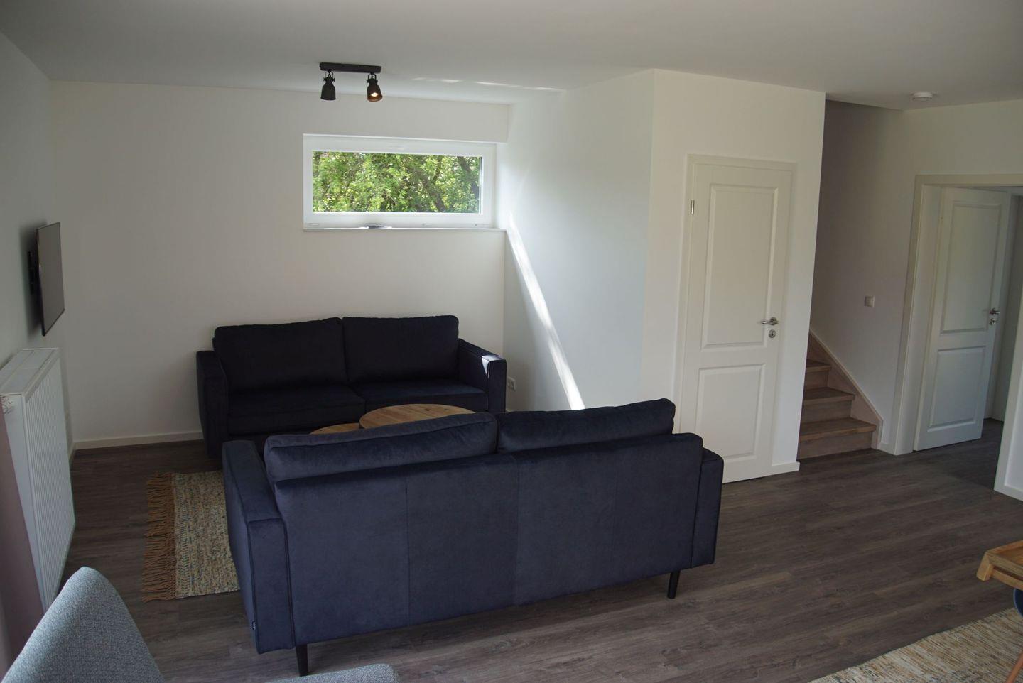 Im Inneren erwartet Sie ein offener Bereich, der den Küchen-, Ess- und Wohnbereich umfasst. Die moderne Einbauküche bietet Ihnen alles, was Sie benötigen, um köstliche Mahlzeiten zuzubereiten. Sie finden hier einen Herd, Backofen, eine Spülmaschine sowie einen Kühlschrank mit Gefrierfach. Kaffeemaschine, Wasserkocher, Toaster und weitere Utensilien sind ebenfalls vorhanden. Der Essbereich ist mit einem eleganten Esstisch und sechs bequemen Stühlen ausgestattet, an dem Sie gemeinsame Mahlzeiten genießen können.