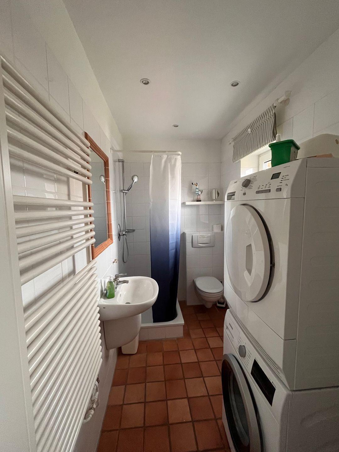 Damit Sie sich wie zu Hause fühlen, gibt es zwei Badezimmer in der Unterkunft. Im Erdgeschoss befindet sich ein Badezimmer mit Dusche, Waschbecken, WC sowie einer Waschmaschine und einem Trockner für Ihre persönliche Wäsche. Im Obergeschoss erwartet Sie ein weiteres Badezimmer mit Badewanne, Waschbecken, WC und einer gemütlichen Handtuchheizung. Hier können Sie sich nach einem erlebnisreichen Tag entspannen und erfrischen.