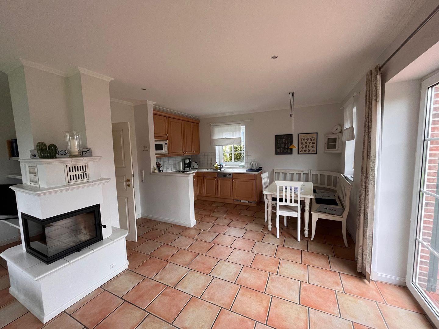 Beim Betreten des Hauses werden Sie von einer modernen und offenen Küche begrüßt. Die Einbauküche verfügt über ein Cerankochfeld, eine Mikrowelle, einen Kühlschrank mit Gefrierfach, eine Spülmaschine, eine Kaffeemaschine, einen Wasserkocher und einen Toaster. Hier können Sie nach Herzenslust kochen und gemeinsame Mahlzeiten zubereiten. Der angrenzende Wohnbereich lädt mit einem bequemen Sofa und zwei Sesseln zum Entspannen ein. Genießen Sie die wohlige Atmosphäre vor dem Kamin und schauen Sie sich einen Film auf dem Flachbildfernseher an oder hören Sie Ihre Lieblingsmusik über die Stereoanlage mit Radio und CD-Player.