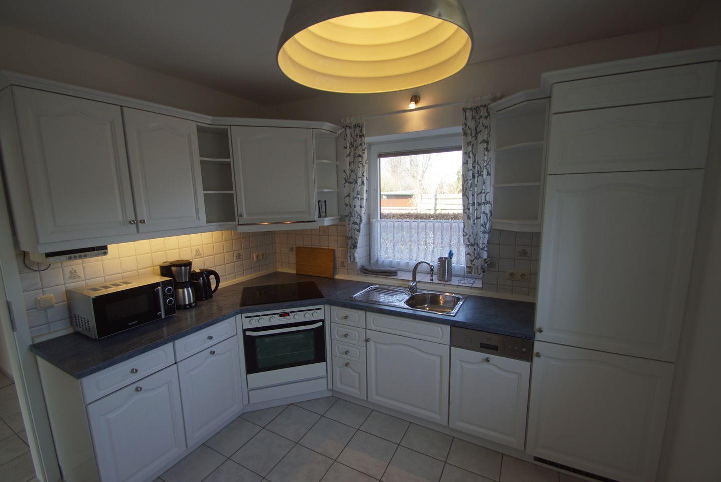Das Innere des Ferienobjekts wird Sie mit seiner gemütlichen Atmosphäre begeistern. Die komplett ausgestattete Küche lässt keine Wünsche offen und bietet Ihnen alles, was Sie für die Zubereitung Ihrer Mahlzeiten benötigen. Von Herd und Backofen über Spülmaschine und Kühlschrank mit Gefrierfach bis hin zu Mikrowelle, Kaffeemaschine, Wasserkocher und Toaster - hier finden Sie alles, was das Herz begehrt.
