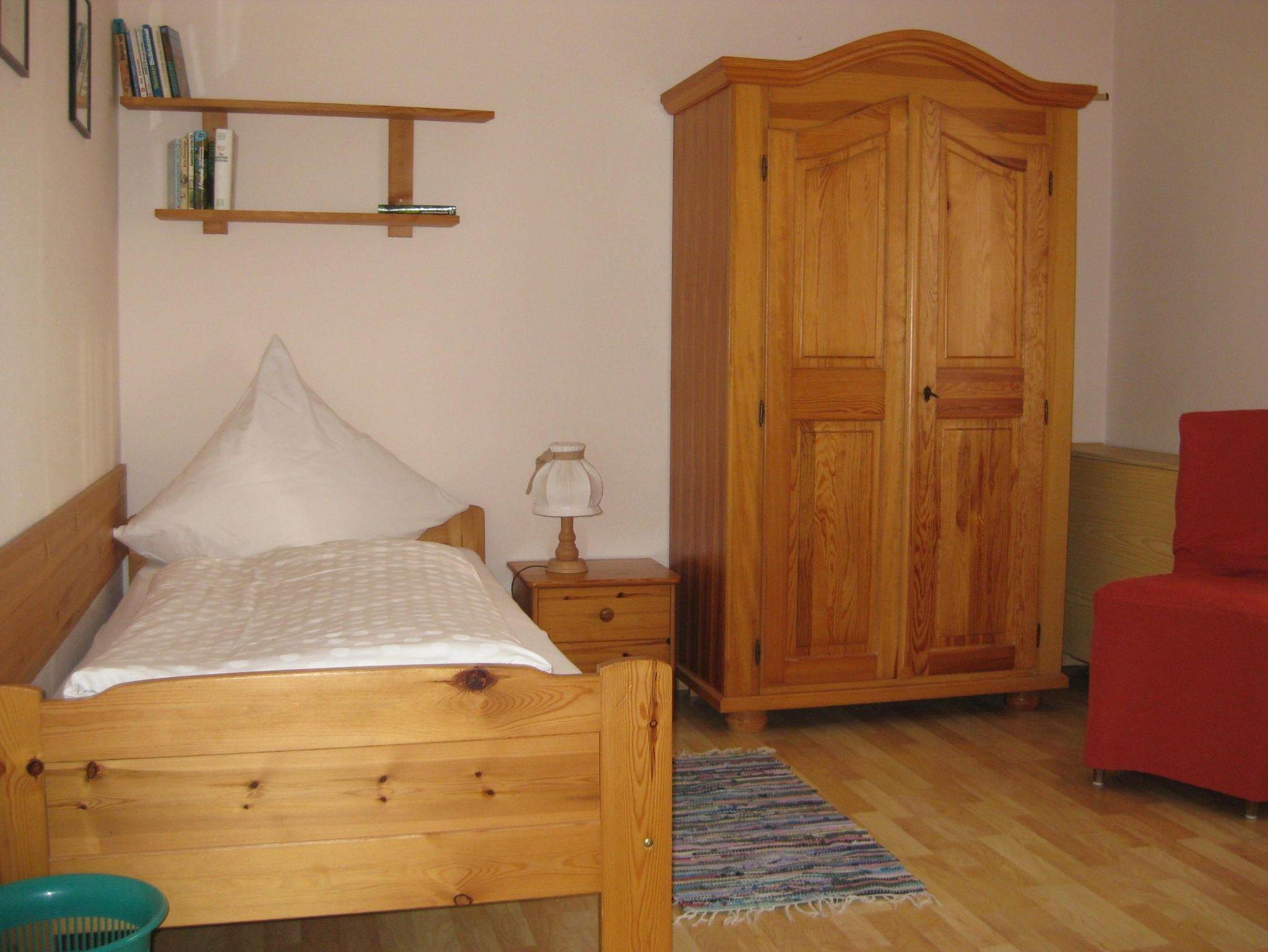 zu 5Personen. Die beiden Schlafzimmer sind mit einem Doppelbett und 1 Einzelbett und Schlafsofa ausgestattet. Babybett wird auf Wunsch mit Bettwäsche bereitgestellt. Aufpreis 25.00€ pro Aufenthalt! Im Wohnzimmer befindet sich eine Couch-Garnitur, ein Schrankbett, ein Flachbild-TV,
