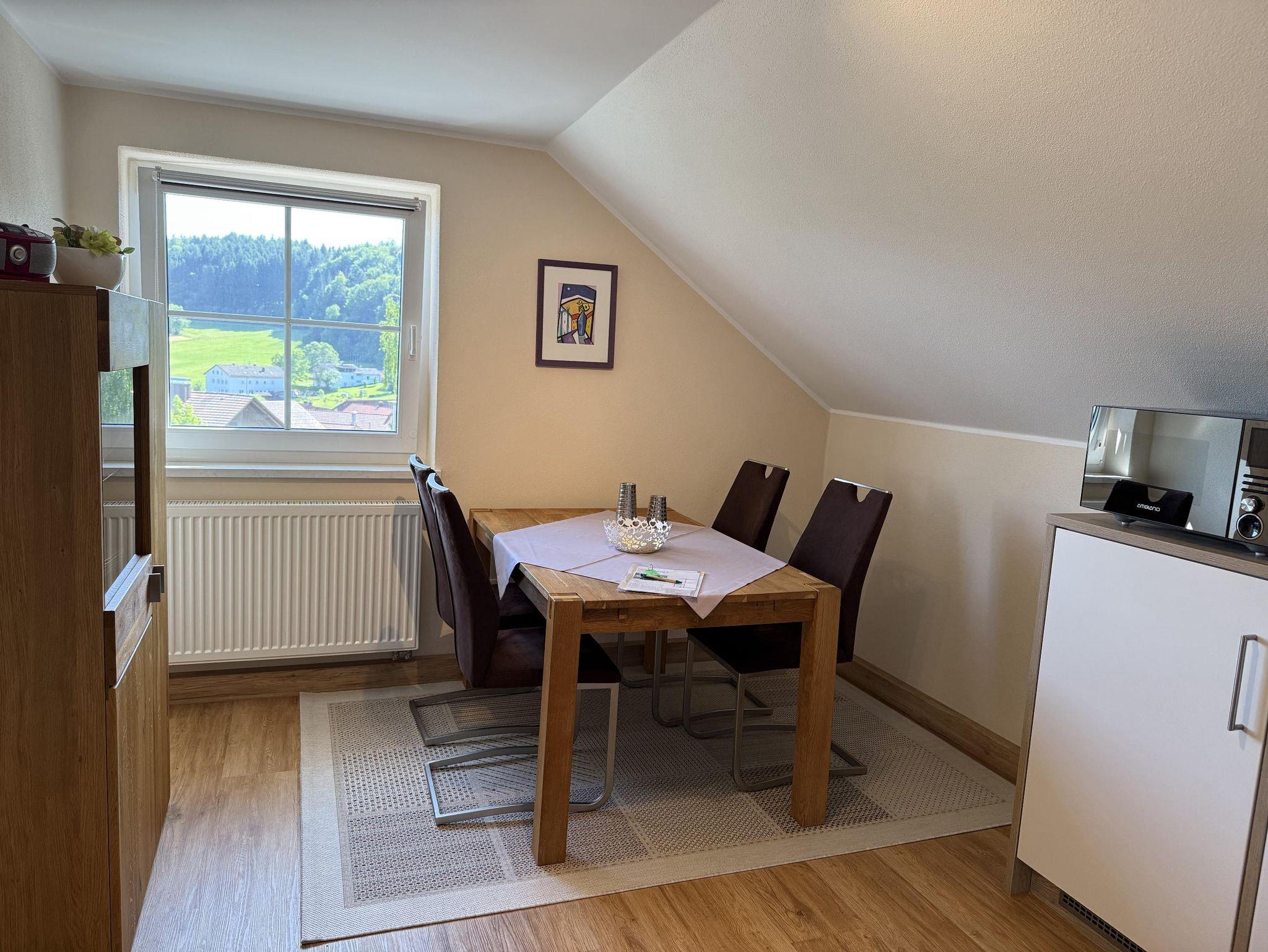 Herzlich willkommen in unserer gemütlichen Ferienwohnung im Luftkurort Schönberg, Ortsteil Kirchberg, mitten im idyllischen Bayerischen Wald im Landkreis Freyung-Grafenau. Genießen Sie einen traumhaften Panoramablick auf die Berge und Höhenzüge des unteren Bayerischen Waldes – eine Aussicht, die zur Entspannung einlädt und Lust auf Erkundungstouren macht. Unsere liebevoll renovierte Ferienwohnung befindet sich im kernsanierten, ehemaligen Feuerwehrhaus, das Ihnen zur Alleinnutzung zur Verfügung steht. Auf 51 Quadratmetern erwarten Sie drei komfortabel und neu ausgestattete Zimmer, darunter ein großzügiges Badezimmer. Für Unterhaltung und moderne Annehmlichkeiten sorgen ein Fernseher und kostenloses WLAN. Direkt vor dem Haus stehen Ihnen Parkplätze zur Verfügung. Einkaufsmöglichkeiten finden Sie im nahegelegenen Hauptort Schönberg oder in der Stadt Grafenau. Für Aktivurlauber beginnt das Abenteuer direkt vor der Haustür: Wandern oder Mountainbiken – zahlreiche Touren starten unmittelbar oder sind in kurzer Zeit erreichbar.