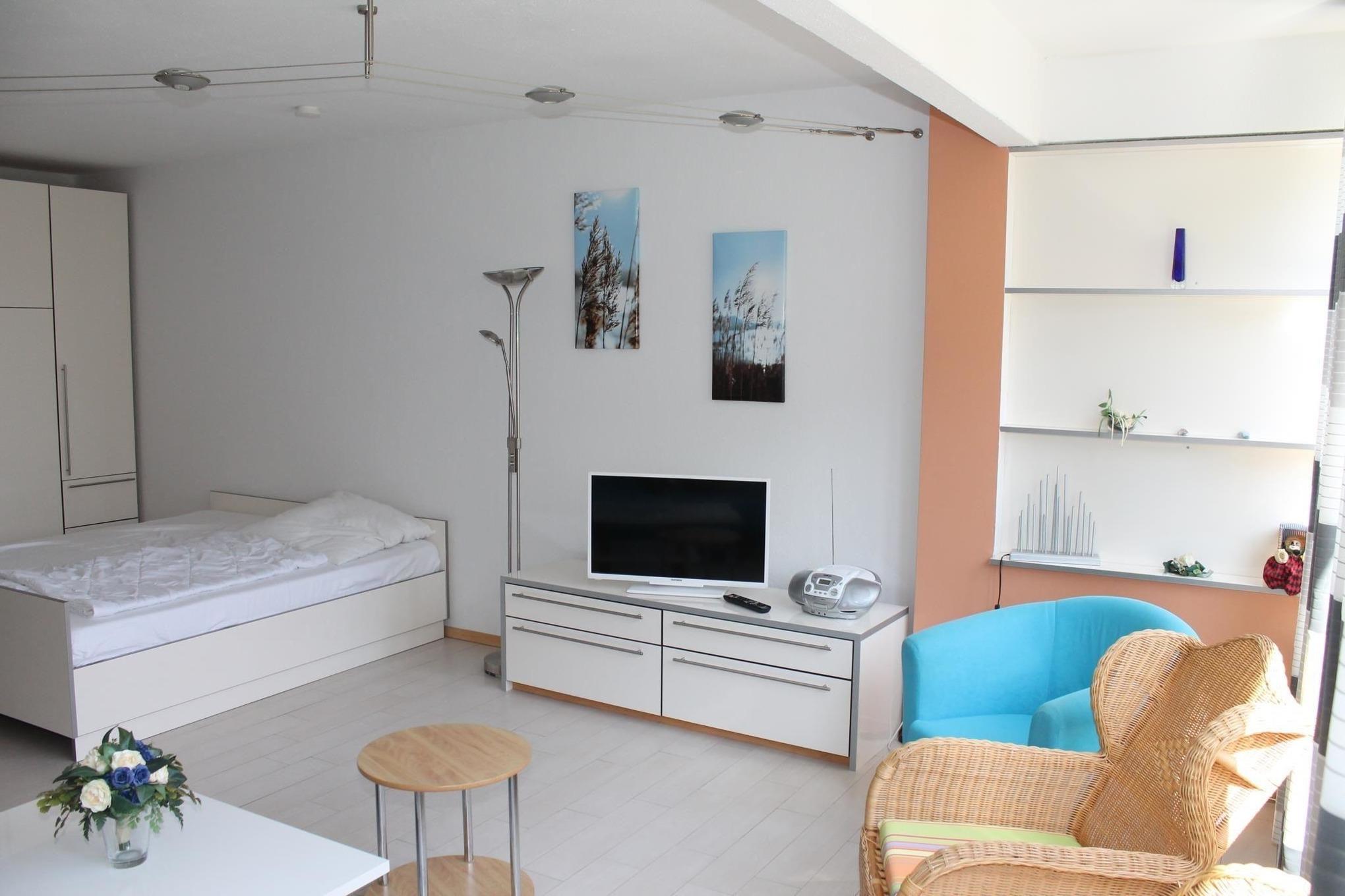 Das 40 m² große Appartement (Ostseite) auf der 1. Etage im Haus Schleswig ist als Einraumappartement komfortabel und modern eingerichtet.