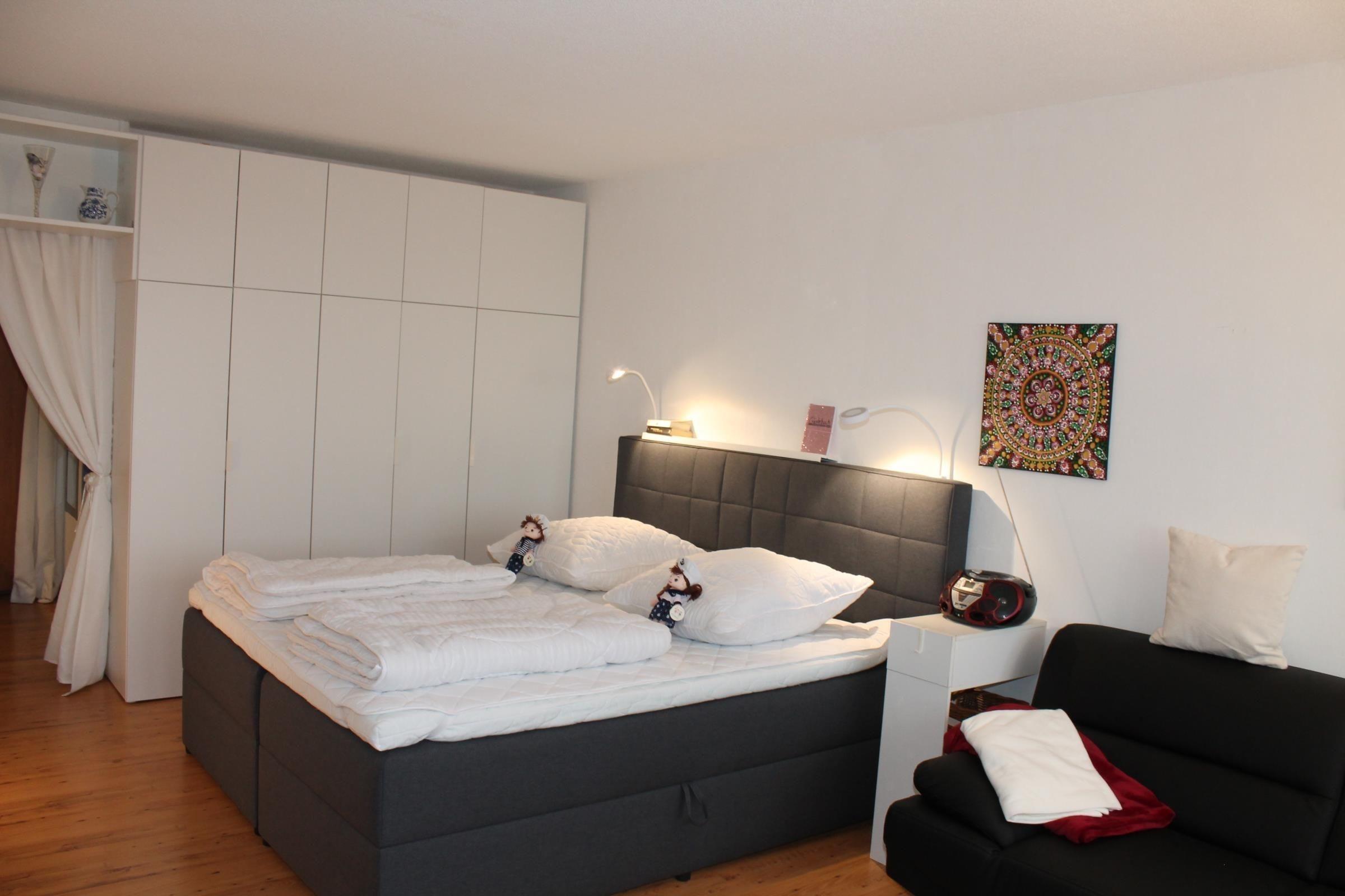 Ein Boxspringbett mit 1,80 x 2,00m (keine kleinen Bettlaken) bietet Platz für max. 2 Personen,.