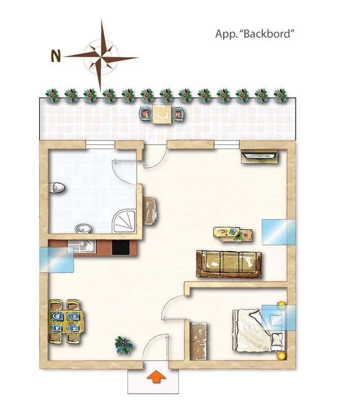 Die Apartments sind großzügig geschnitten und hell und freundlich eingerichtet. Der Wohnbereich mit Sofa und Flachbild-TV bietet viel Raum für gemütliche Fernsehabende. Die angrenzende Küchenzeile mit einem Esstisch für bis zu 4 Personen ist bestens geeignet für Lunch und Dinner in gemeinsamer Runde. Im Eltern-Schlafzimmer findet ihr ein Doppelbett. Die Schlafcouch im Wohnzimmer kann für zwei weitere Personen aufgebettet werden. Auf dem Balkon gönnt ihr euch eine Portion Ostseebrise und schaut auf unseren Garten. Die Apartments befinden sich auf der 2. Etage des Gebäudes "Heimathafen"