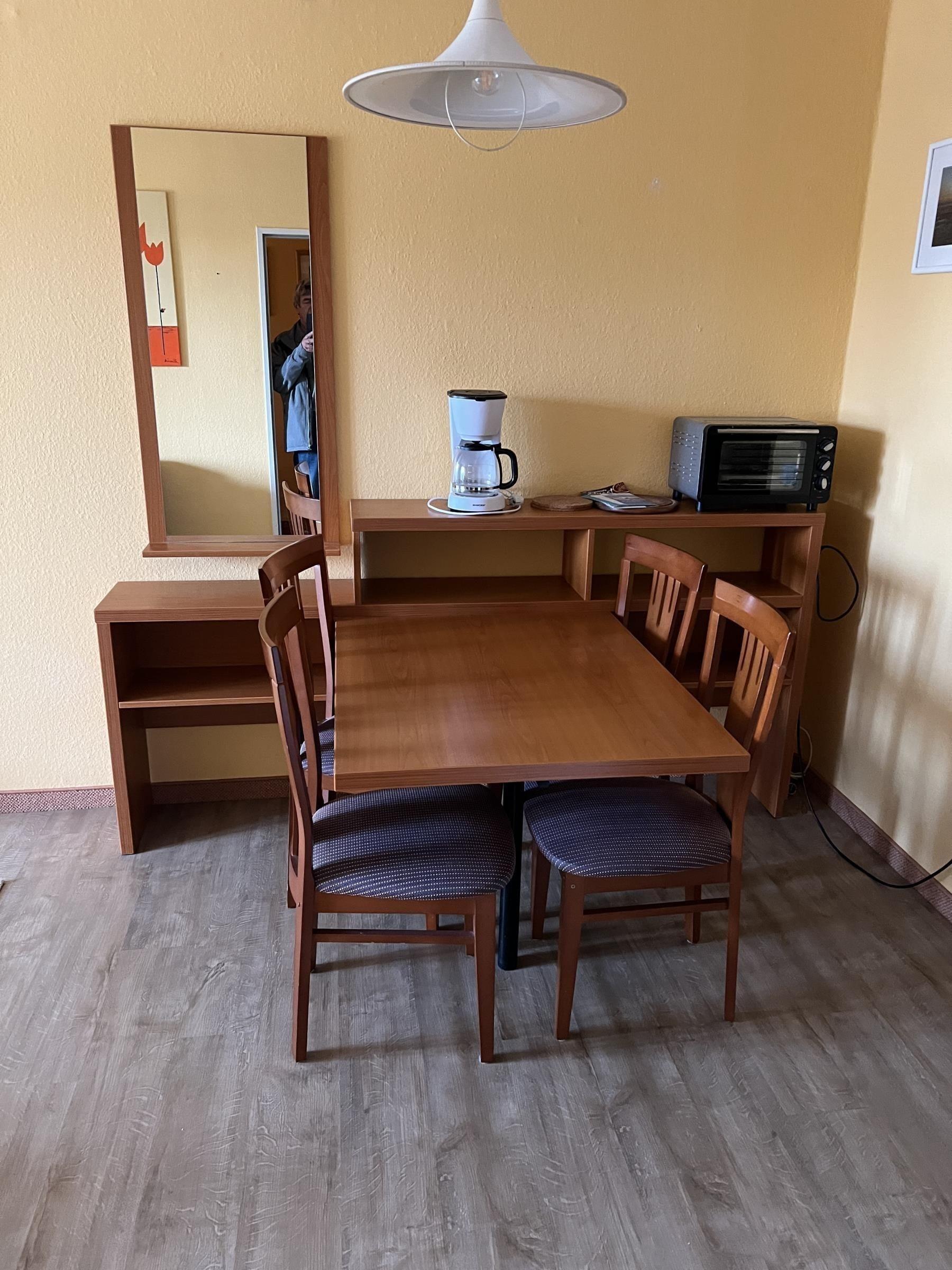In dieser ansprechenden Ferienwohnung erwartet die Gäste eine ideale Ausstattung für einen komfortablen Aufenthalt. Die Wohnung bietet ein Schlafzimmer mit vier Doppelbetten, die für erholsame Nächte sorgen. Die Küchenzeile ist mit einem Elektro-/Gasherd, einer Mikrowelle, einem Kühlschrank, einer Kaffeemaschine, einem Toaster und einem Wasserkocher ausgestattet, sodass die Zubereitung von Mahlzeiten zum Kinderspiel wird. Das Badezimmer verfügt über eine Dusche und ist mit einem Haartrockner ausgestattet. Für Unterhaltung sorgt ein TV sowie eine Auswahl an Brettspielen. Praktische Annehmlichkeiten wie Internet mit WLAN, ein Parkplatz, eine Waschmaschine und ein Fahrstuhl runden das Angebot ab. Die Heizung sorgt in den kühleren Monaten für ein angenehmes Raumklima, während Rauchmelder und ein Staubsauger für zusätzliche Sicherheit und Sauberkeit sorgen. Ideal für entspannte Urlaubstage.