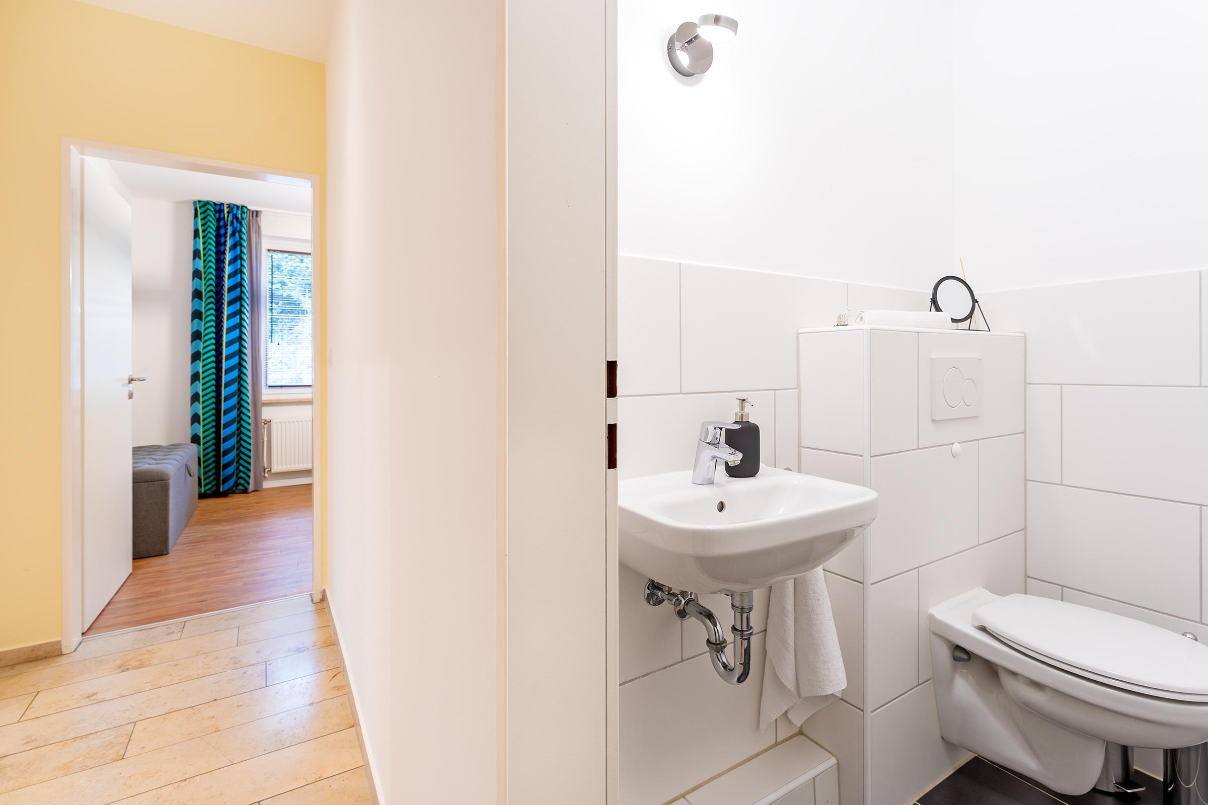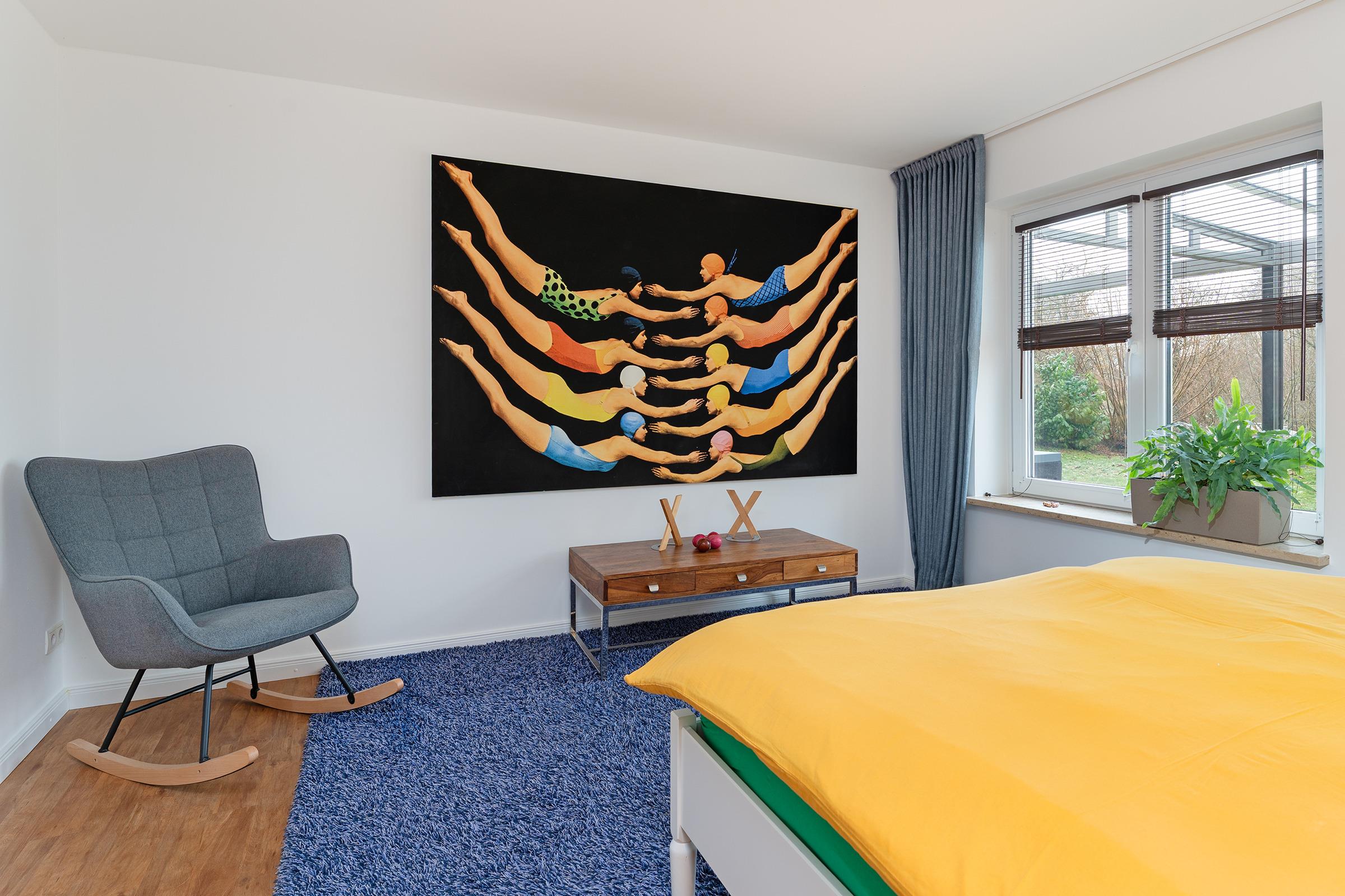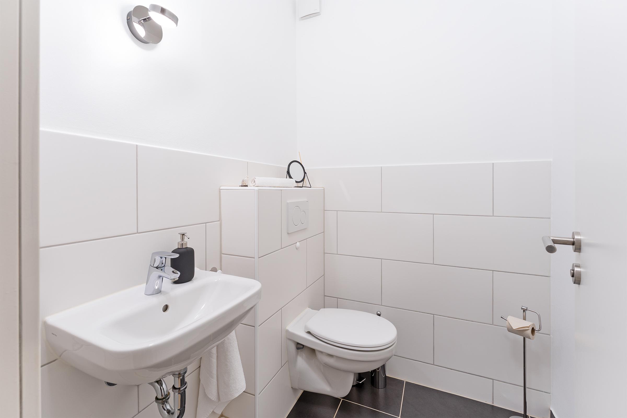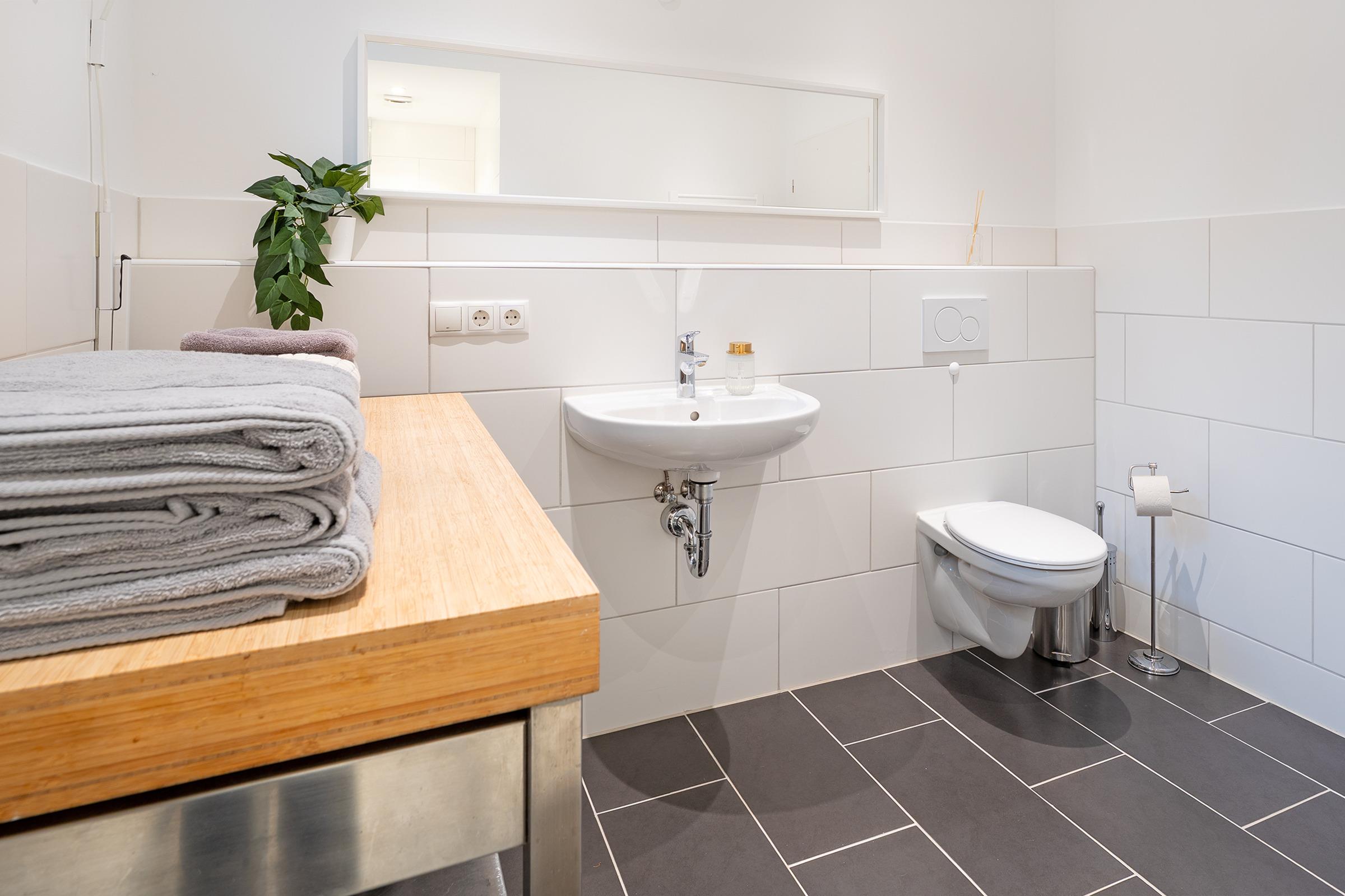 Die Schlafzimmer sind komfortabel eingerichtet – eines mit Doppelbett, eines mit französischem Doppelbett und ein weiteres mit Einzelbett – und bieten erholsame Ruhe. Im modernen Bad erwarten Sie eine bodengleiche Dusche, WC und ein beheizbarer Handtuchheizkörper und das zusätzliche Gäste-WC sorgt für extra Komfort.