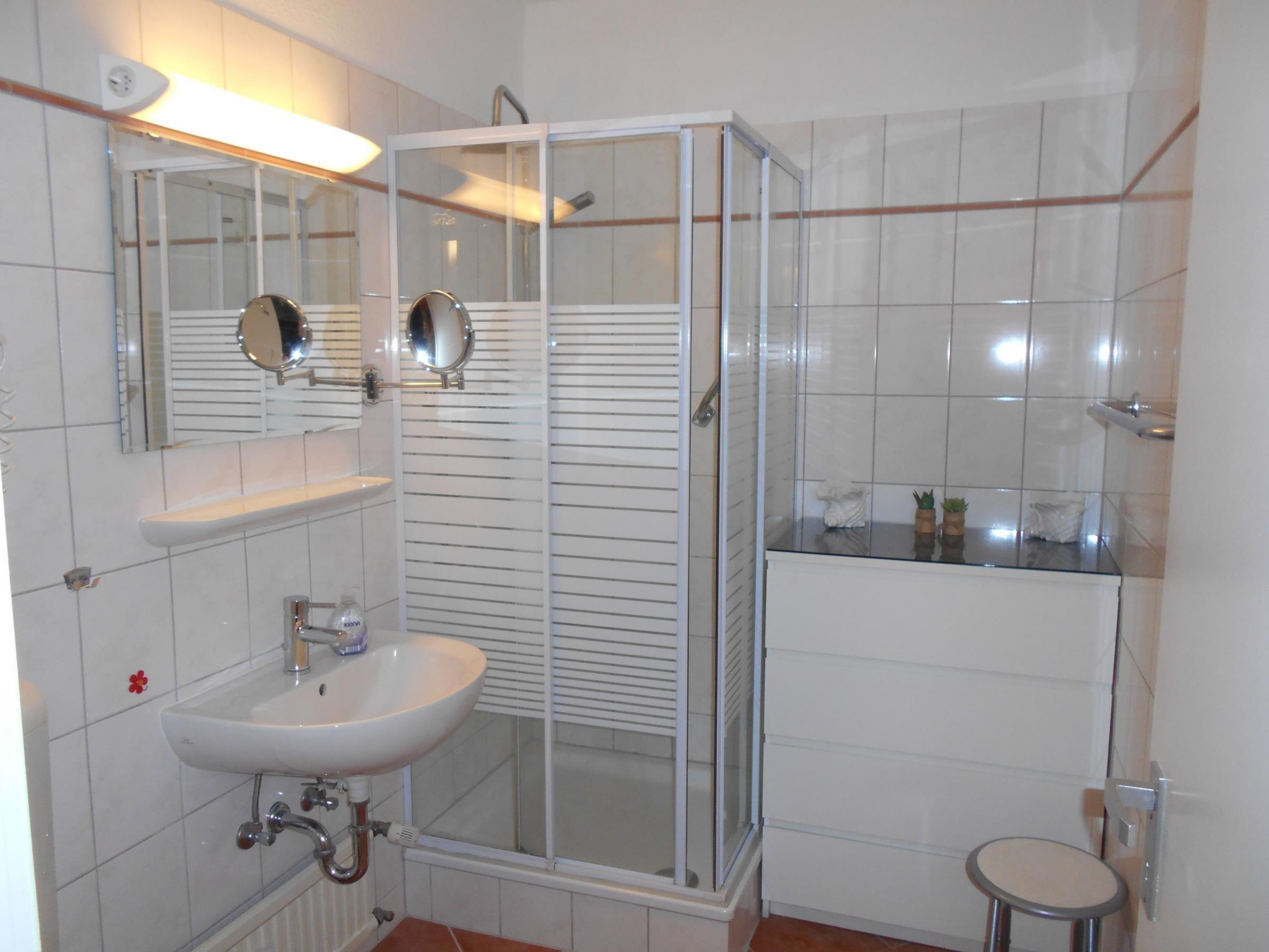 Die voll ausgestattete Küchenzeile beinhaltet einen Elektro-/Gasherd, eine Mikrowelle, einen Kühlschrank, sowie eine Kaffeemaschine und einen Toaster – ideal für die Zubereitung von Mahlzeiten. Ein Duschbad mit Haartrockner sorgt für zusätzlichen Komfort. Die Wohnung ist barrierefrei und bietet Annehmlichkeiten wie Internet mit WLAN, einen Fernseher und Heizung. Zur praktischen Ausstattung gehören außerdem Geschirrtücher, Geschirr und Besteck, ein Wasserkocher sowie ein Staubsauger. Ein Parkplatz und ein Fahrstuhl sind ebenfalls vorhanden, um den Aufenthalt so angenehm wie möglich zu gestalten.