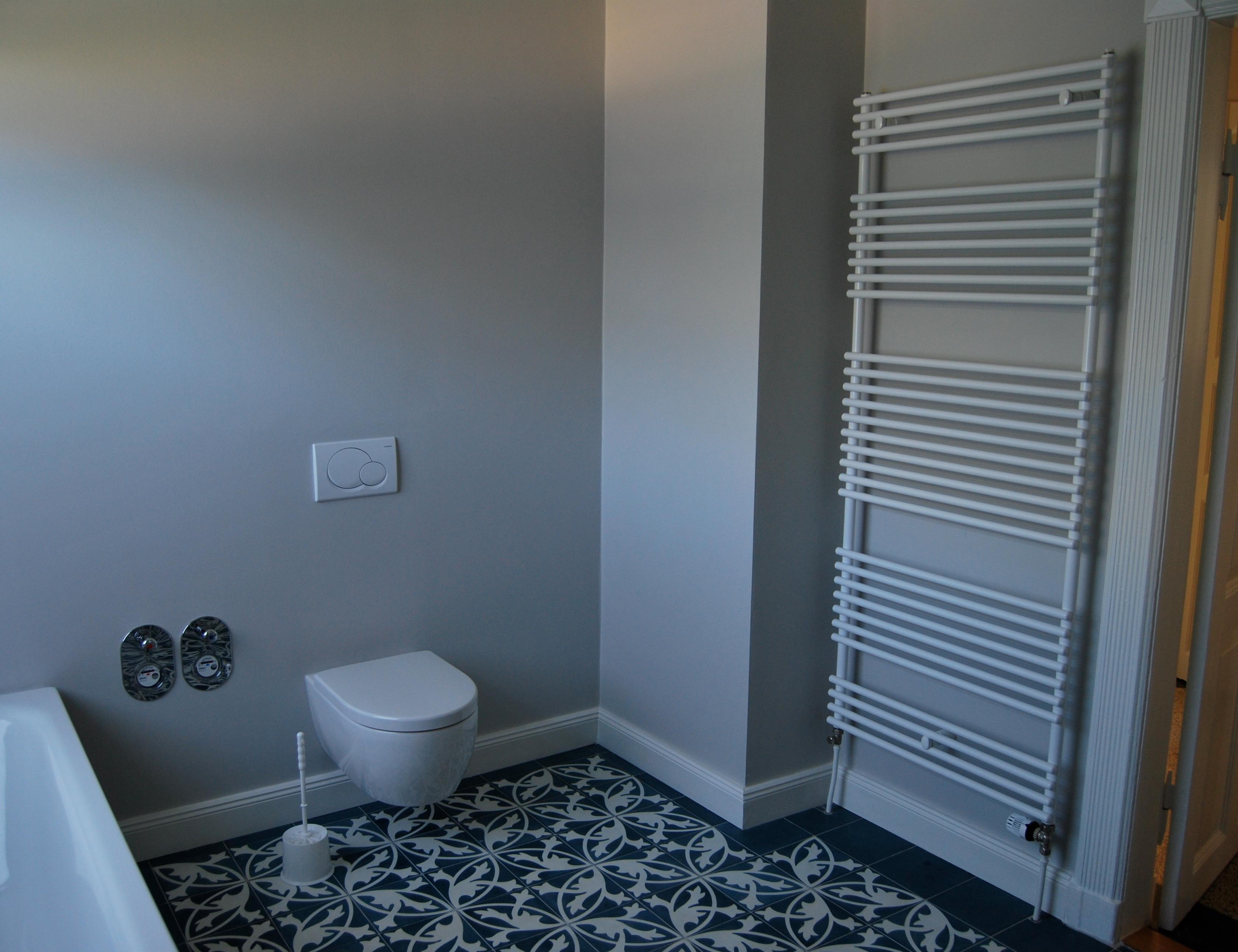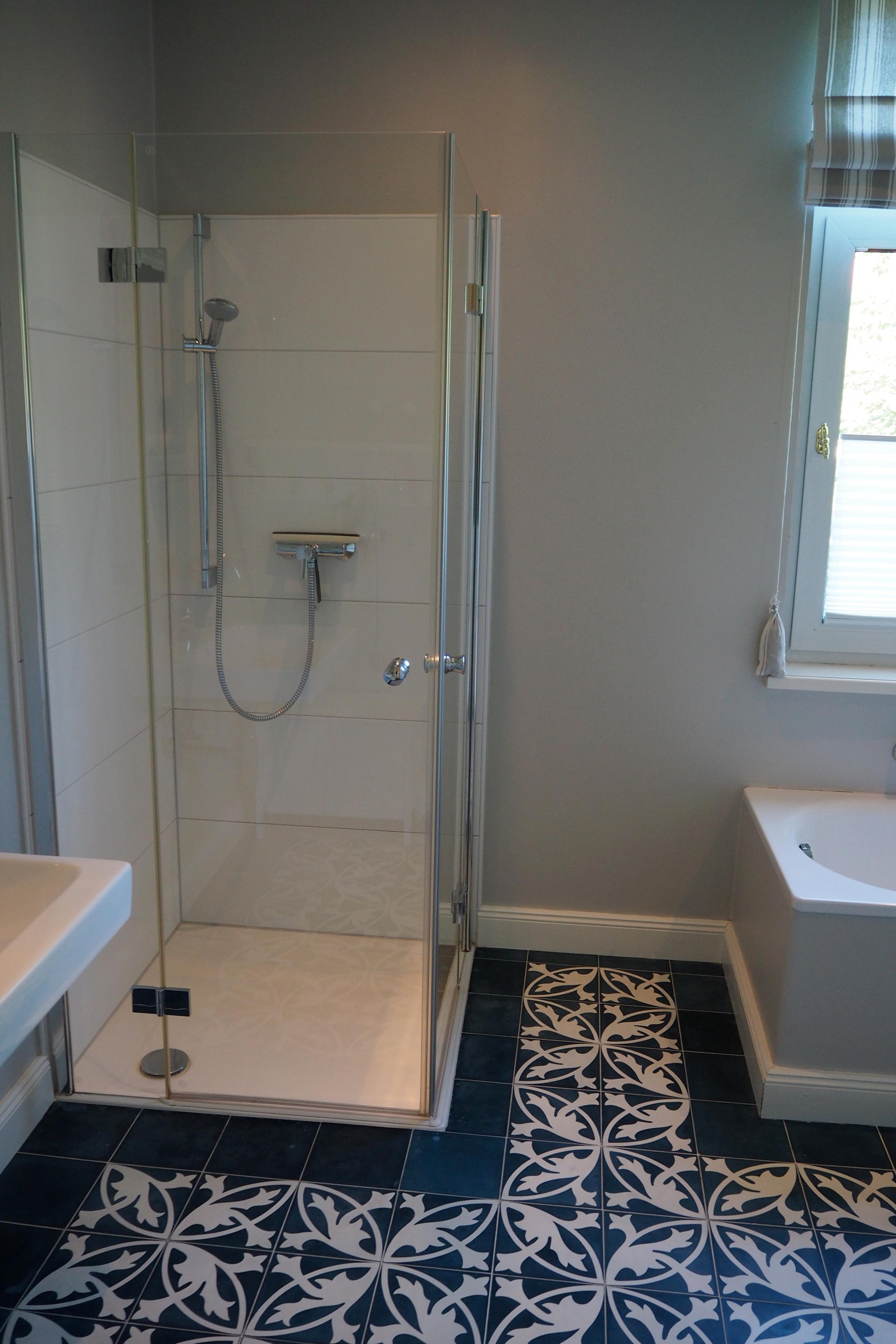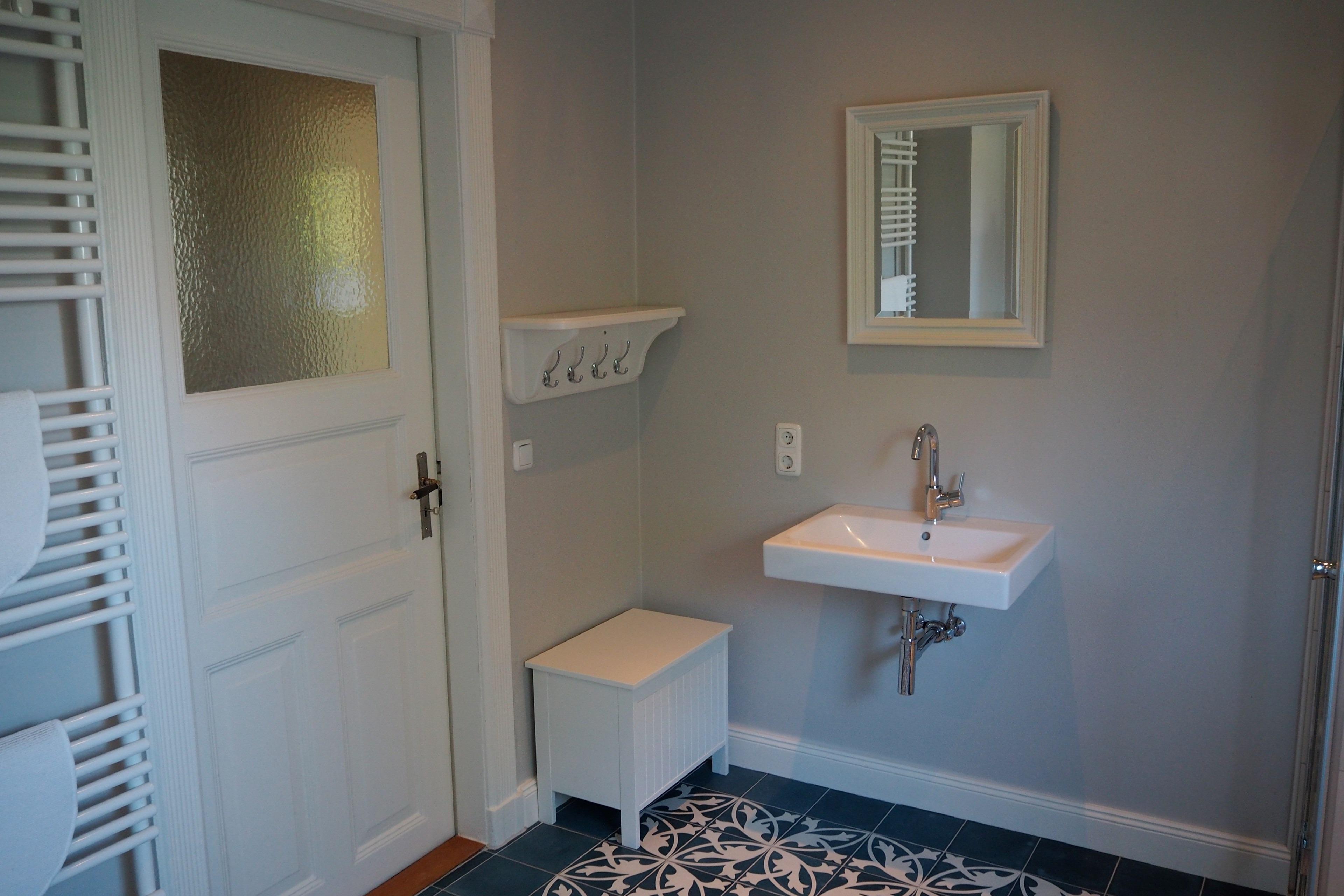 Ein weiteres Highlight dieses Appartements ist sein Bad mit Dekorbodenfliesen, bodenebener Glasdusche und einer Badewanne zum Entspannen.