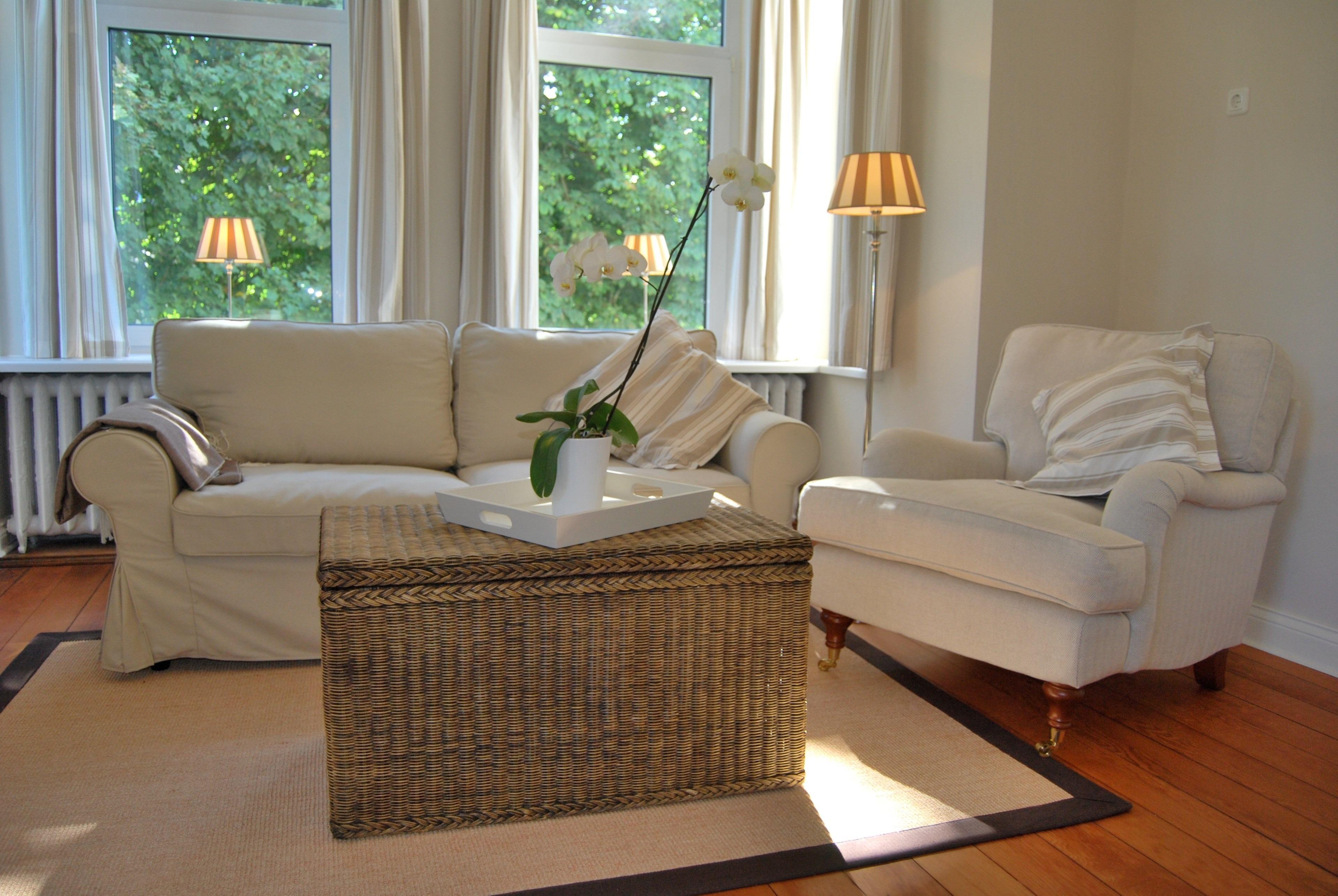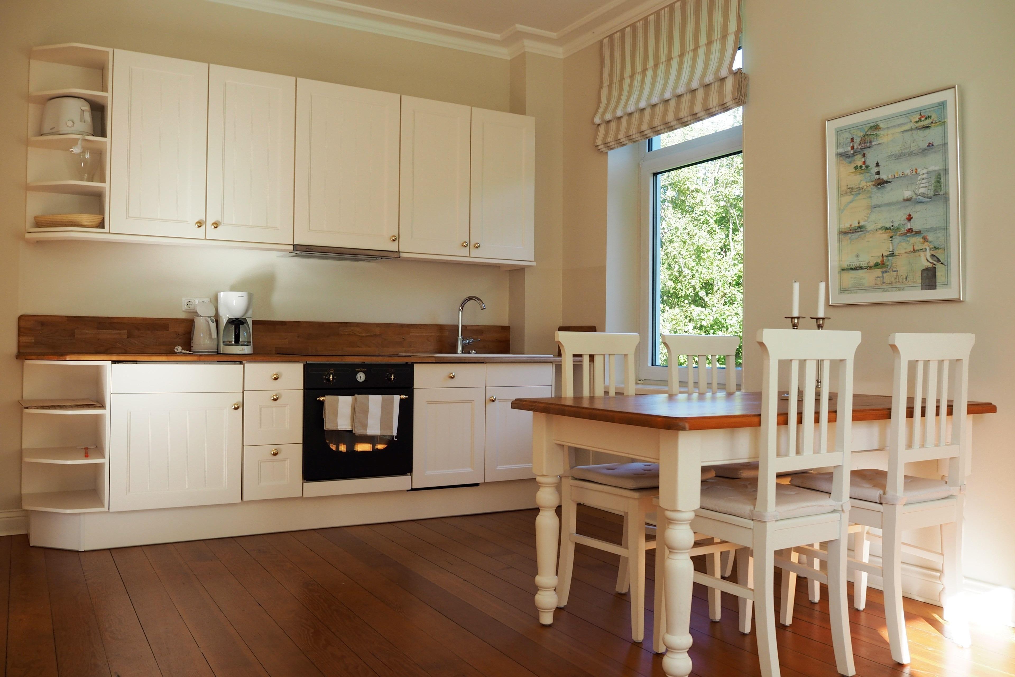 Das Garten-Appartement erstreckt sich über das Erdgeschoss der Villa Baltica. Von hier aus haben Sie direkten Zugang zum großen Garten. Das Appartement verfügt über zwei Schlafzimmer im maritimen Landhausstil. Das Zentrum des ca. 75 m² großen Appartements ist die großzügige Wohnküche mit ihrem gemütlichen Erker und der alten Schiebetür. Hier befindet sich neben einer hochwertigen und vollständig ausgestatteten Küche, der Essbereich sowie die Sofaecke mit englischen Landhausmöbeln und moderner Unterhaltungselektronik (LCD-TV, DVD, CD-Radio, WLAN).