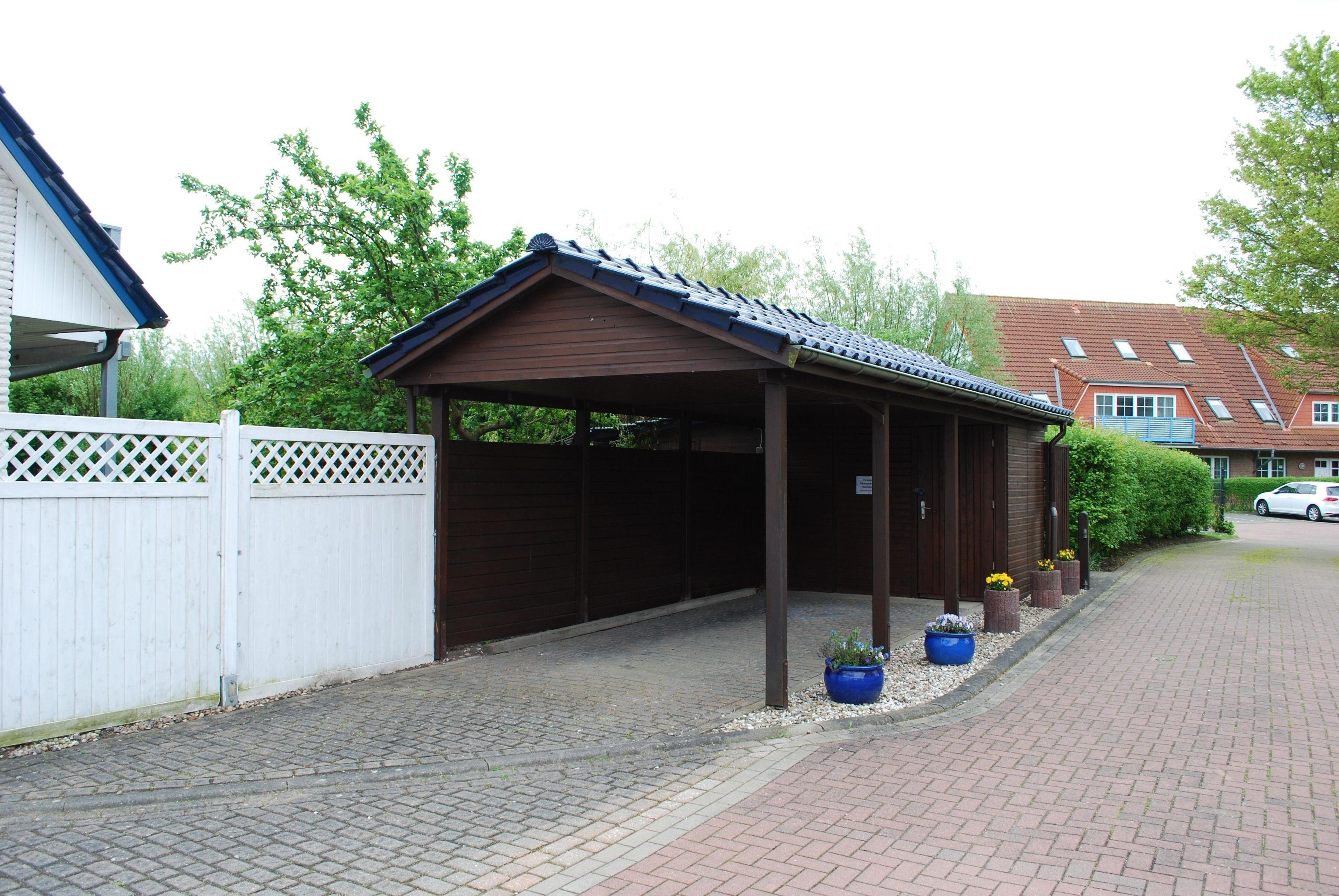 Ihr Fahrzeug dürfen Sie in einem Carport abstellen und für andere Utensilien steht eine abschliessbare Hütte zur Verfügung.