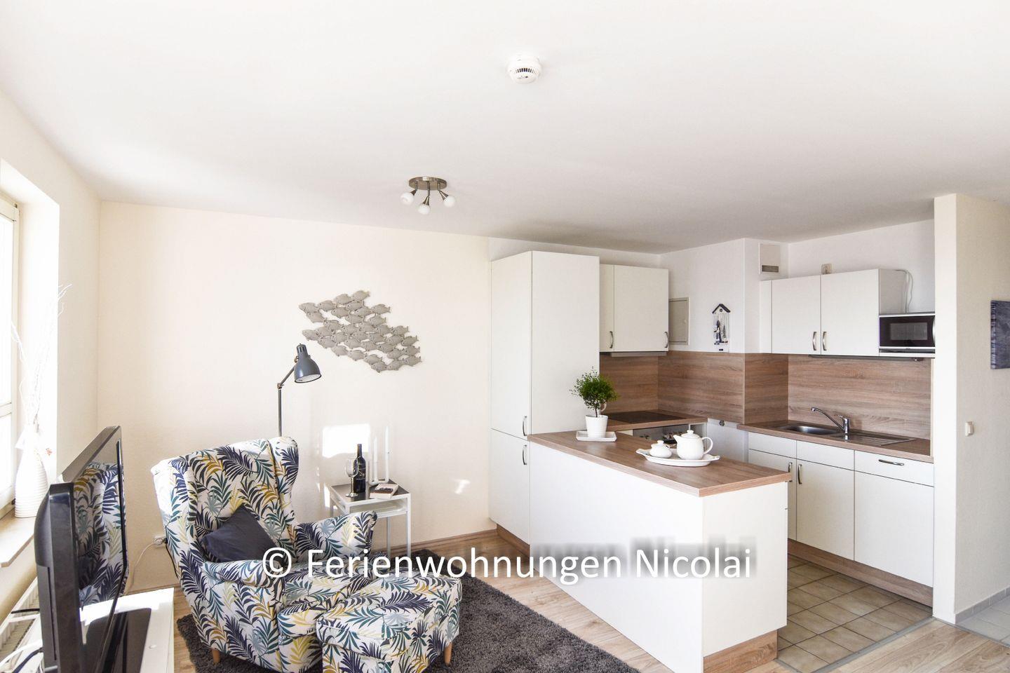 Die Wohnung ist für 2 Erwachsene und eine dritte Person ausgelegt. Die Ferienwohnung hat eine sehr schöne Raumaufteilung mit 2 Loggien. Eine Loggia liegt in Richtung Strand und hat Meerblick, die 2. Logia ist nach Süden ausgerichtet und bietet schönen Sonnenschein. Eine neue, großzügie Einbauküche bietet allen Komfort und ist komplett inkl. Spülmaschine ausgestattet. Die Ferienwohnung hat eine Gesamtwohnfläche von ca. 45qm. In der Nähe befindet sich der Strandabschnitt mit der DLRG-Station und bis zur Seebrücke sind es nur ein paar Meter. Alles ist liebevoll und modern eingerichtet und bei Ihrer Ankunft kann der Urlaub sofort beginnen, denn für die Erstausstattung ist alles vorhanden. Eine schöne, komplett renovierte Ferienwohnung für 3 Personen.