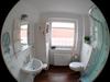 Das helle Badezimmer ist mit einer Dusche, einem WC und einem Waschbecken ausgestattet. Für Ihre Badartikel sind ausreichend Ablagemöglichkeiten vorhanden. Außerdem finden Sie einen Föhn, einen Schminkspiegel und einen Hocker vor.