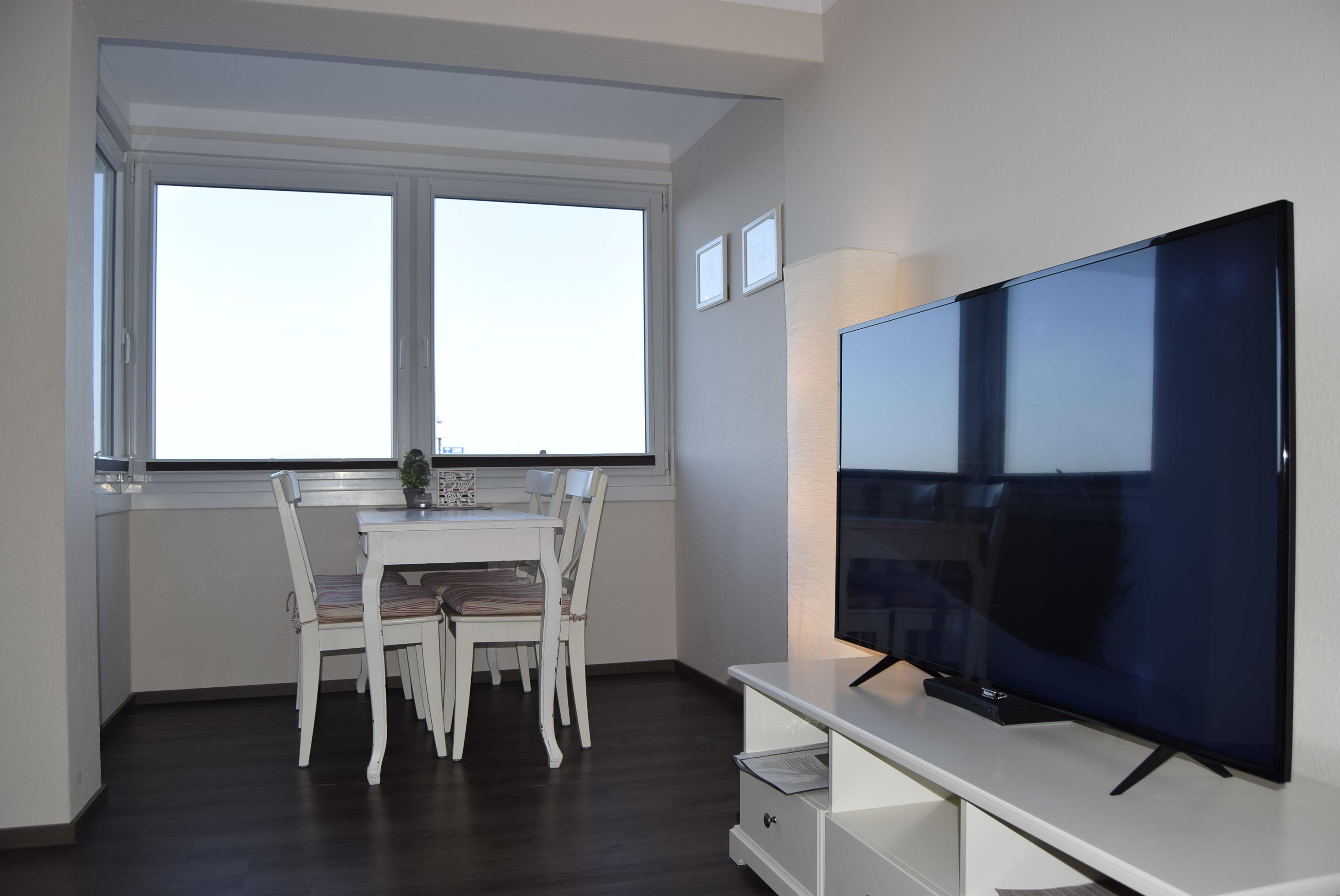 Die Ferienwohnung befindet sich in exklusiver Lage vom Schönberger Strand, direkt an der Promenade, Seebrücke. Sie haben einen direkten Blick auf die Ostsee und den wunderschönen Strand. Vom Flur kommend gelangen Sie in den offenen Wohn- und Essbereich. Die Einbauküche wird Sie begeistern und ist mit allem ausgestattet, was Sie von einer modernen Küche erwarten dürfen. Unterhalten werden Sie bei schlechtem Wetter ( obwohl wir das ja gar nicht kennen ) von einer modernen Bluetooth Box ( JIM MARSHALL ) und einem riesigem PHILIPS LCD Flachbild TV mit einer Diagonale von 139 cm.