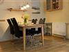 Es gibt ein Schlafzimmer mit Doppelbett (9,5 qm). Im Kinderzimmer (7,6 qm) stehen zwei Einzelbetten zur Verfügung. Ein Bettgitter und ein Kinderhochstuhl sind vorhanden. Das Wohnzimmer ist mit bequemen Polstermöbeln ausgestattet und verfügt über einen großen Farb-TV mit Satellitenempfang und Mini-Anlage mit DVD- und CD-Player. Die in den Wohnraum integrierte Küchenzeile ist mit allen notwendigen Küchengeräten, Utensilien und ausreichend Geschirr ausgestattet. Eine Spülmaschine, Kühlschrank mit Gefrierfach, Herd mit Backofen und Cerankochfeld sind selbstverständlich. Ein großer Esstisch und bequeme Stühle laden zu geselligen Mahlzeiten ein.