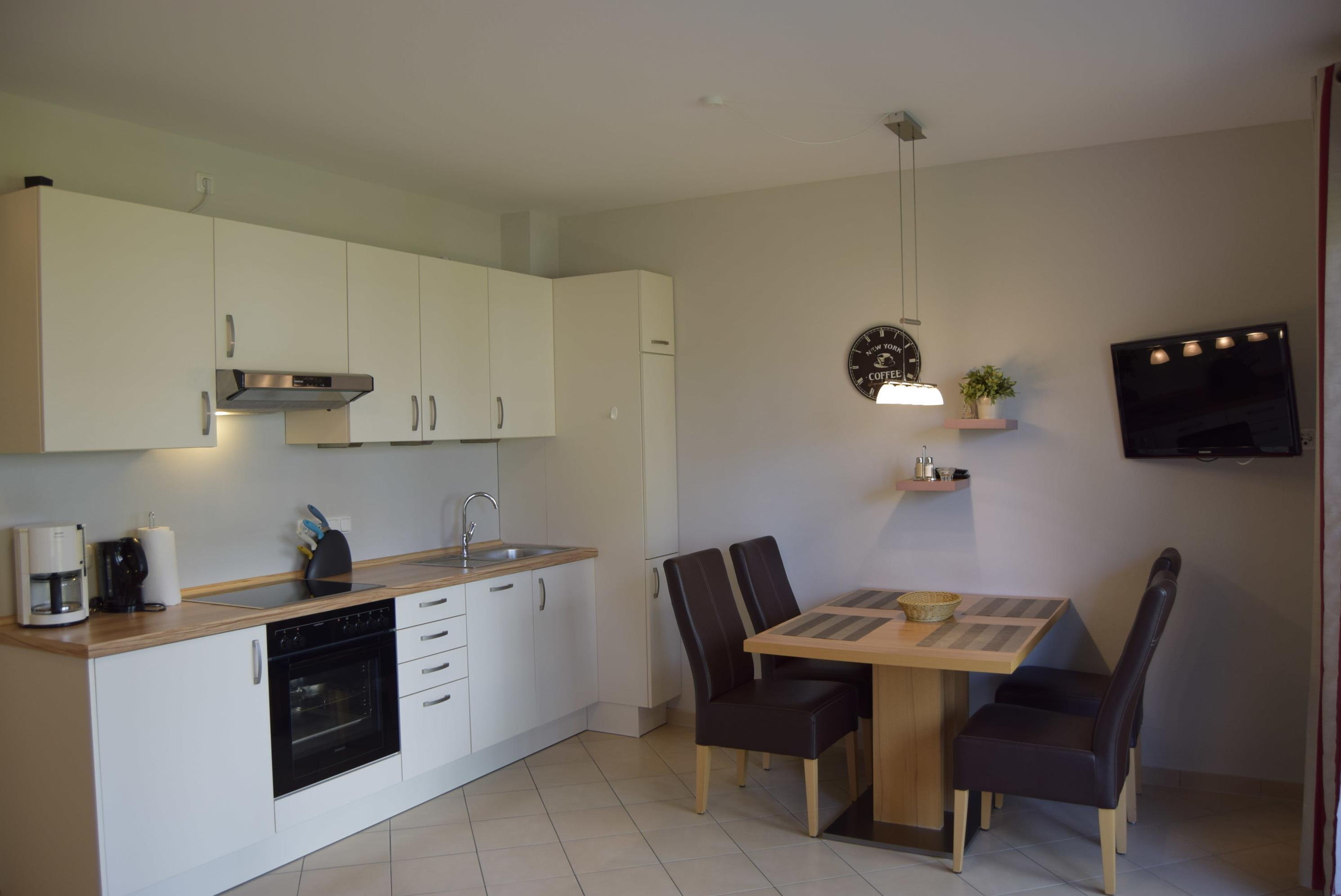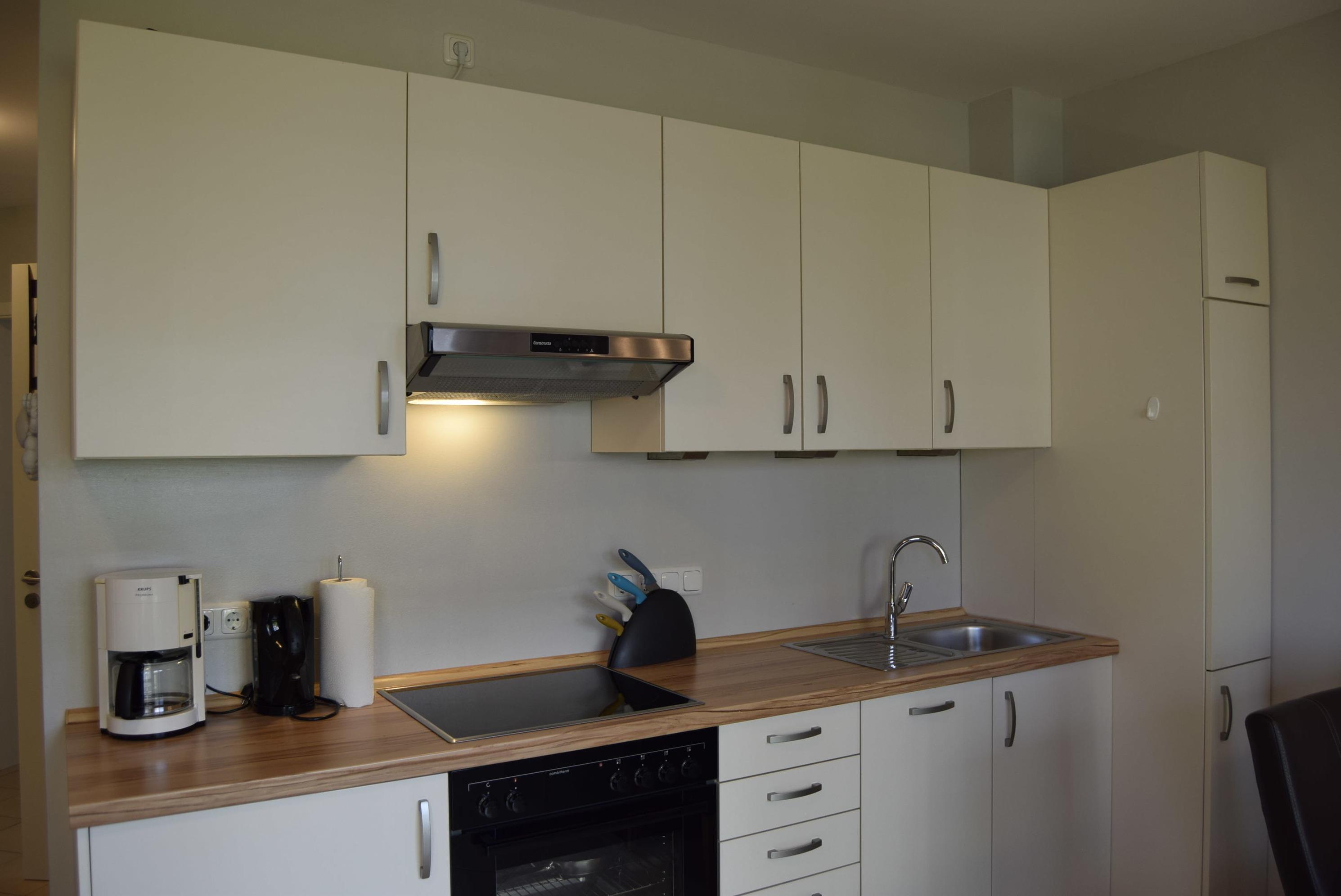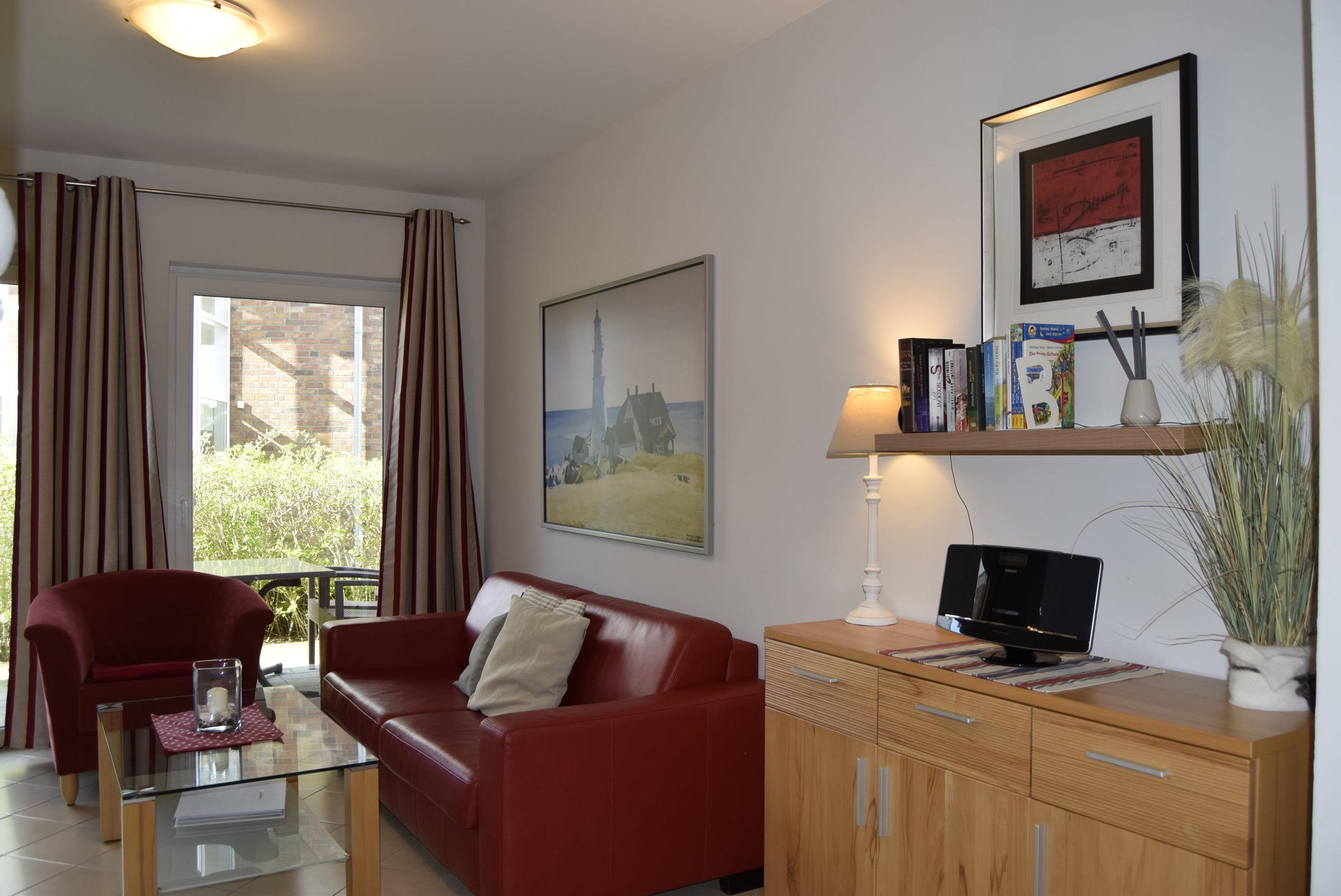 Die Strandentfernung zum feinsandigen Sandstrand beträgt ca. 100 m. Das Appartement für bis zu 4 Personen und einer Wohnfläche von 44 qm besteht aus einem großen Wohnzimmer mit gemütlicher Schlafcouch, einer komplett eingerichteten Küchenzeile, einem Schlafzimmer, einem Duschbad mit Handtuchheizung und einer Diele. Die komplette Wohnung verfügt über Fußbodenheizung, alle Fenster sind mit Außenjalousien ausgestattet. Eine große Südterrasse - ca. 12 qm - mit Gartenmöbeln runden das Angebot ab. Zur Wohnung gehört ein abschließbarer Abstellraum für Fahrräder, Bollerwagen, usw. sowie ein für Sie reservierter Kfz-Stellplatz.