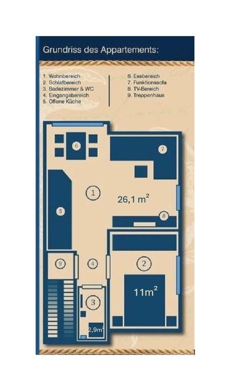(*) Anmerkung: Aus Platzgründen gibt es bei der Sauna-Kabine keine Extra-Dusche und keine Ruhemöglichkeit - beides benutzen Sie bitte in Ihrem Ferienappartement.