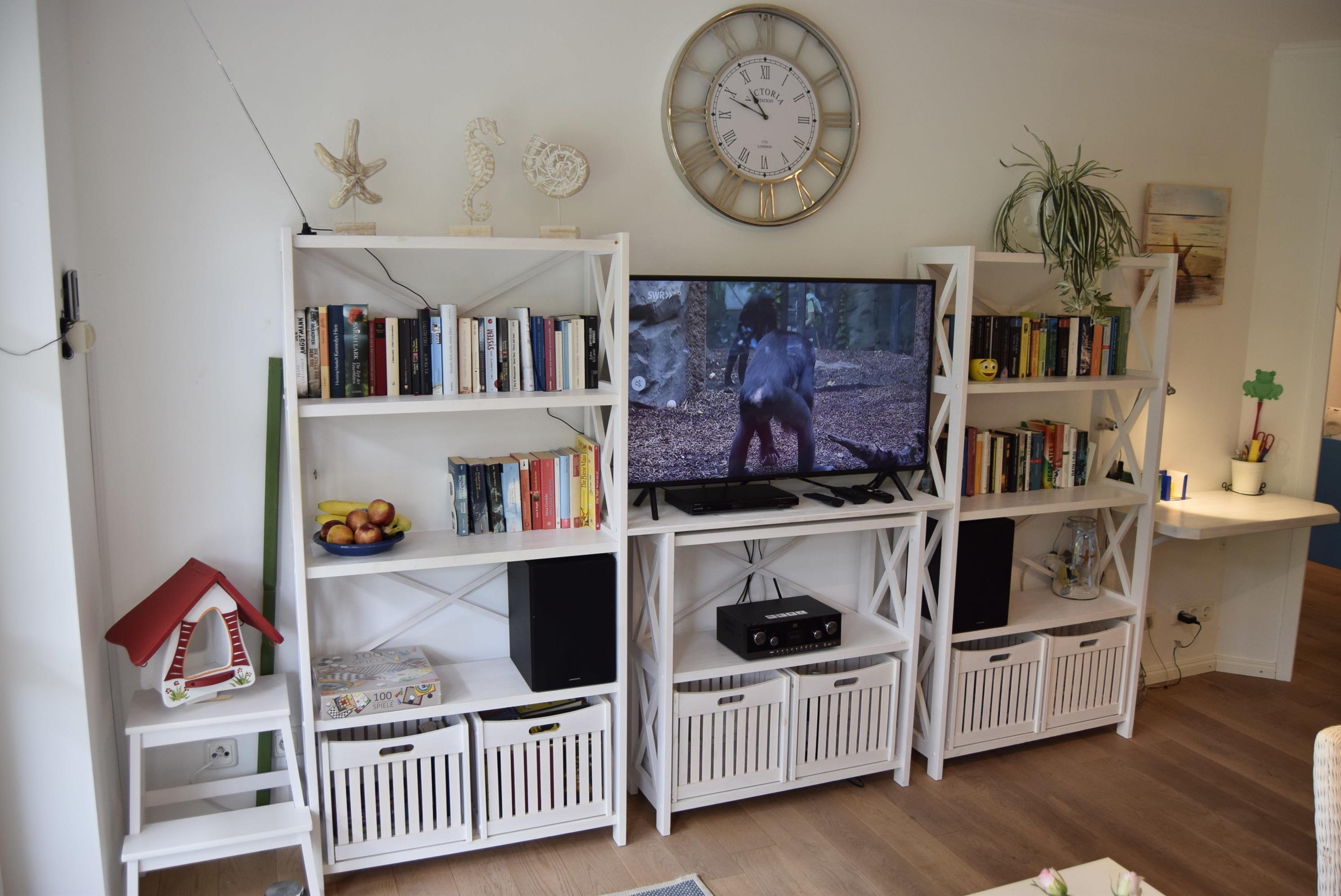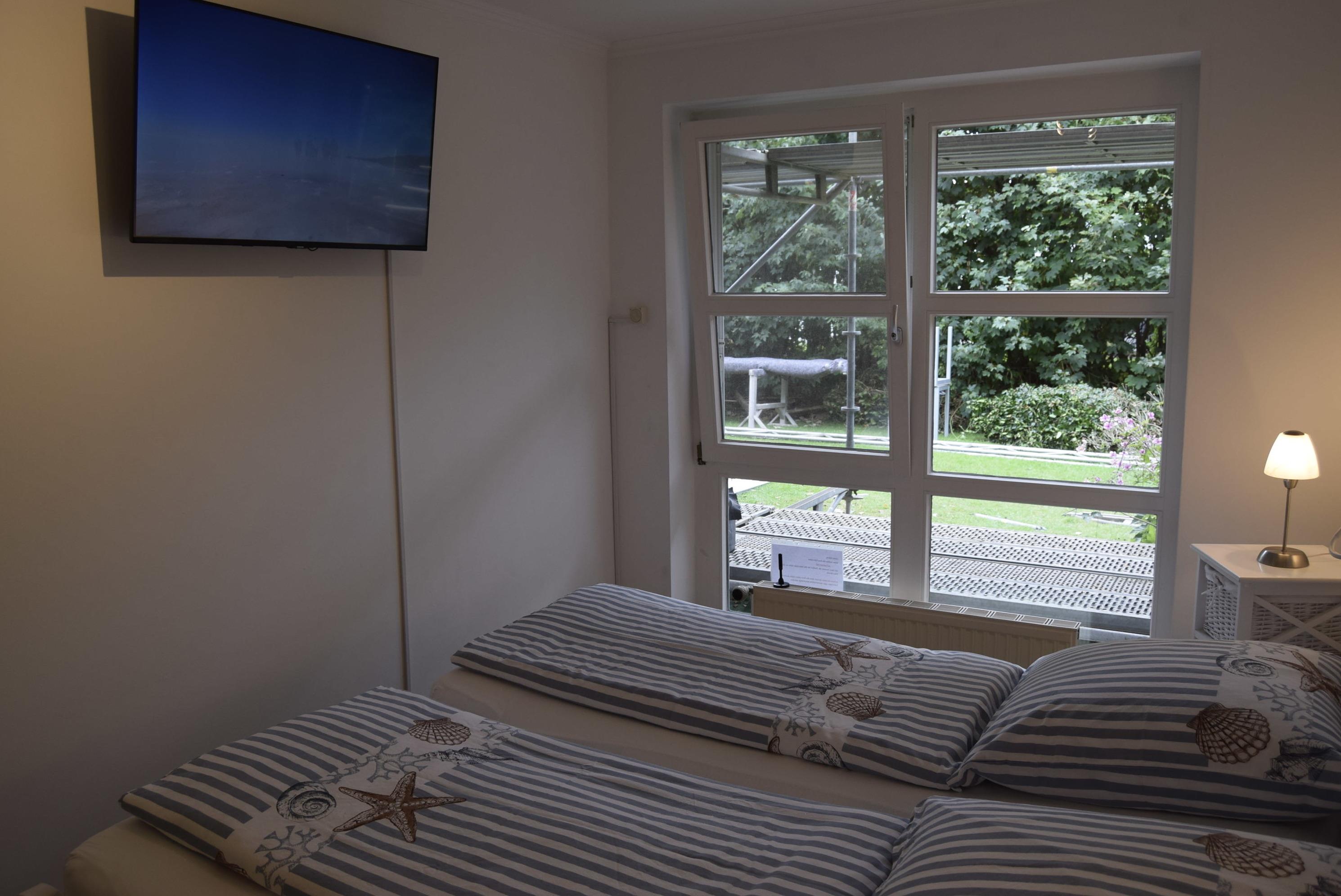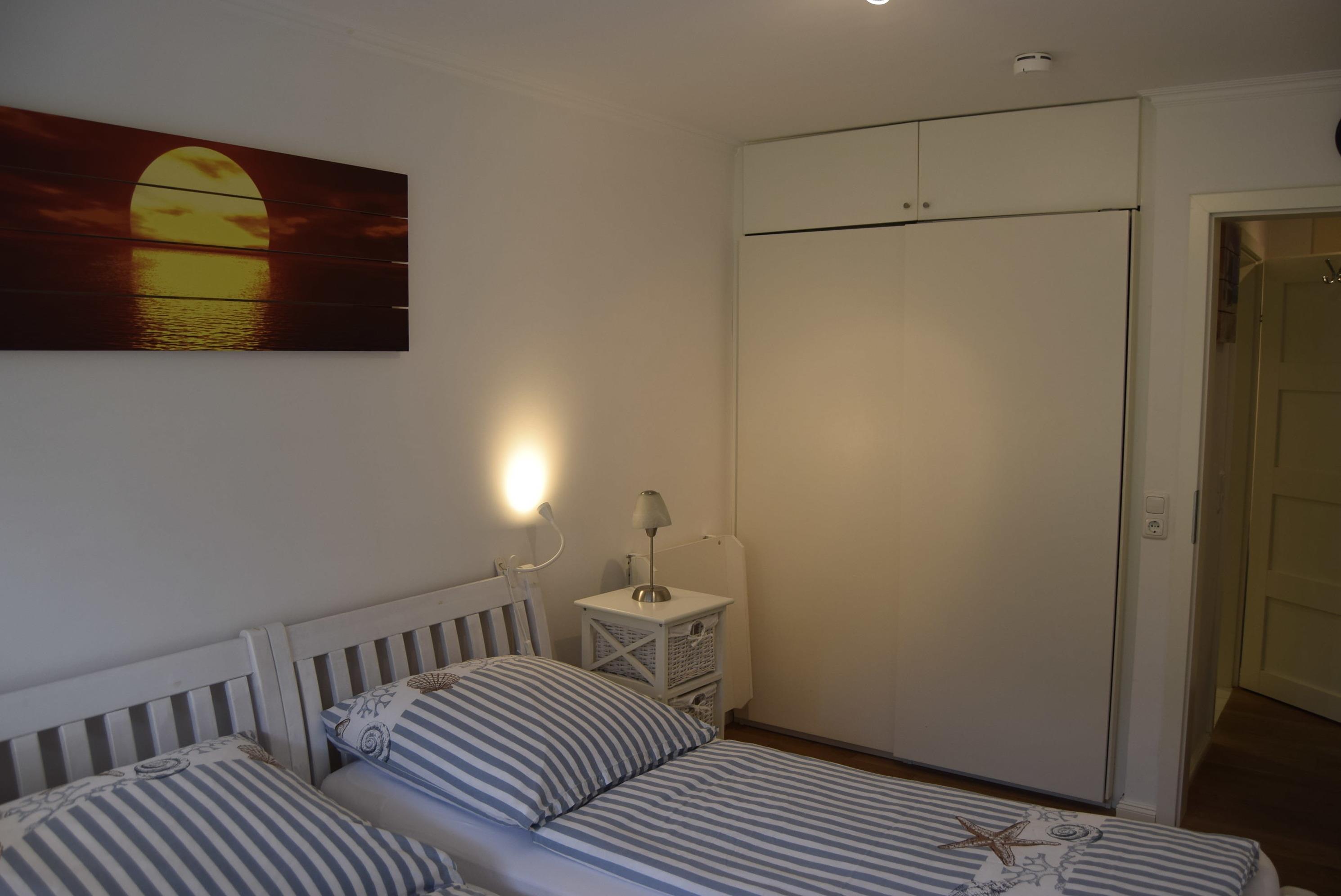 Die Wohnung ist in einem hellen, maritimen Landhausstil modern eingerichtet. Auf 41 Quadratmeter Wohnfläche bietet sie 2 Personen ausreichend Platz für einen komfortablen Urlaub mit separaten Schlafzimmer, in dem sich Einzelbetten und ein Flachbildfernseher befinden. Dort steht genügend Schrankplatz für mitgebrachte Sachen zur Verfügung.