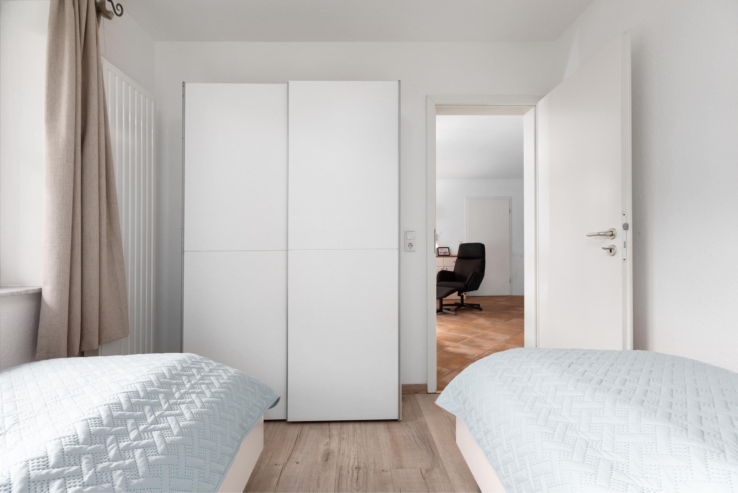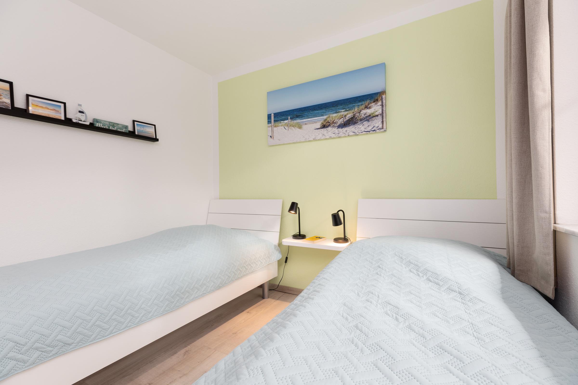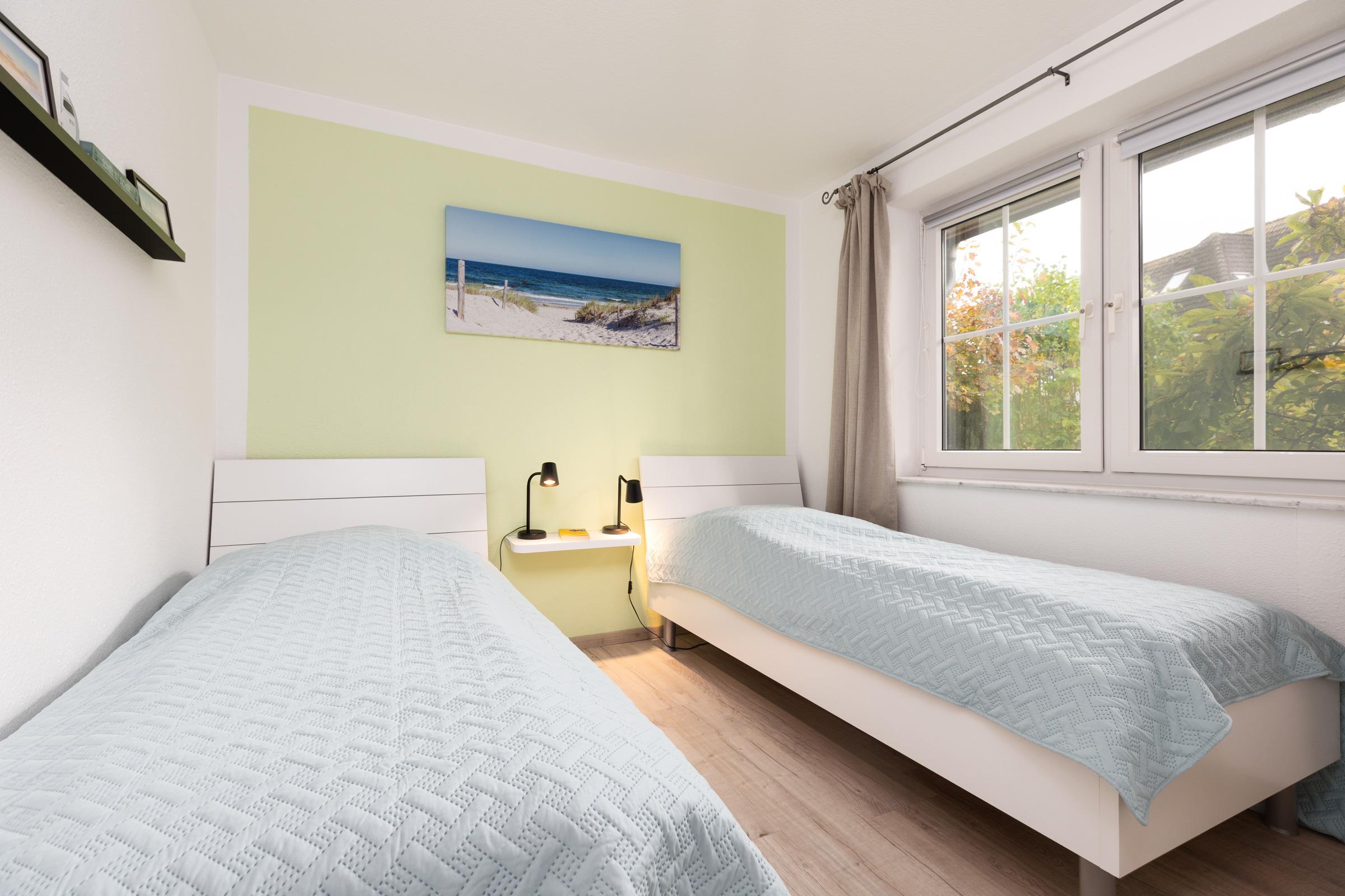 Schlafzimmer 2: 2 Einzelbetten (je ca. 90x200 cm), Kleiderschrank, Verdunkelung (Rollos)