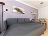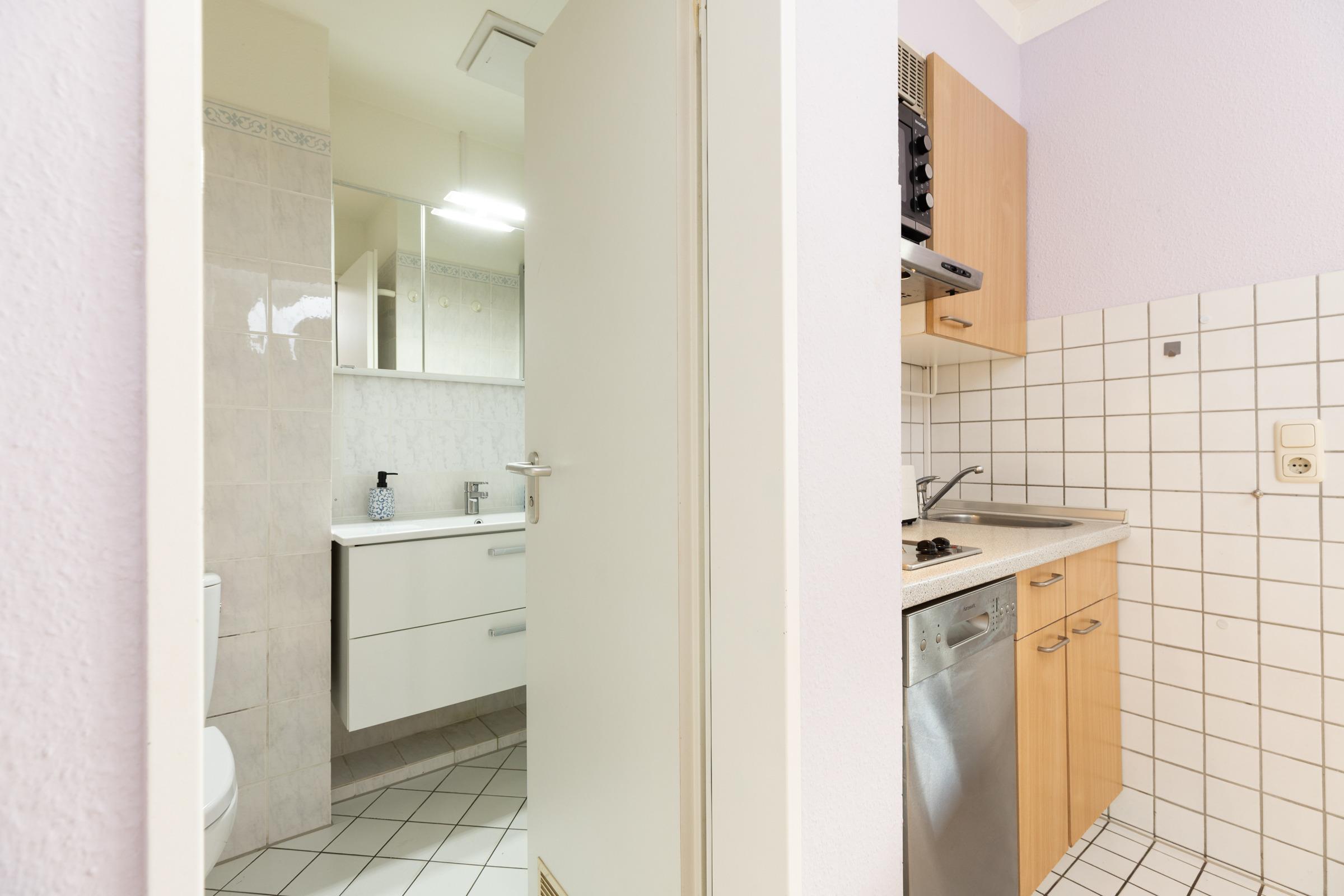 Sie treten ein in den kombinierten Wohn-Essbereich mit Essecke, Küchenzeile mit Geschirrspüler und Zugang zur möblierten Terrasse mit Strandkorb. Die Schlafcouch (Liegefläche 140x200cm) lässt sich schnell zu einer Schlafgelegenheit für 2 Personen herrichten. Das separate Schlafzimmer verfügt über ein 140x200cm breites Doppelbett. Links neben dem Eingang befindet sich das helle Duschbad. Entspannen können Sie sich auf der geschützten Terrasse des Appartements – von hier aus haben Sie eingeschränkte Sicht auf die Ostsee.