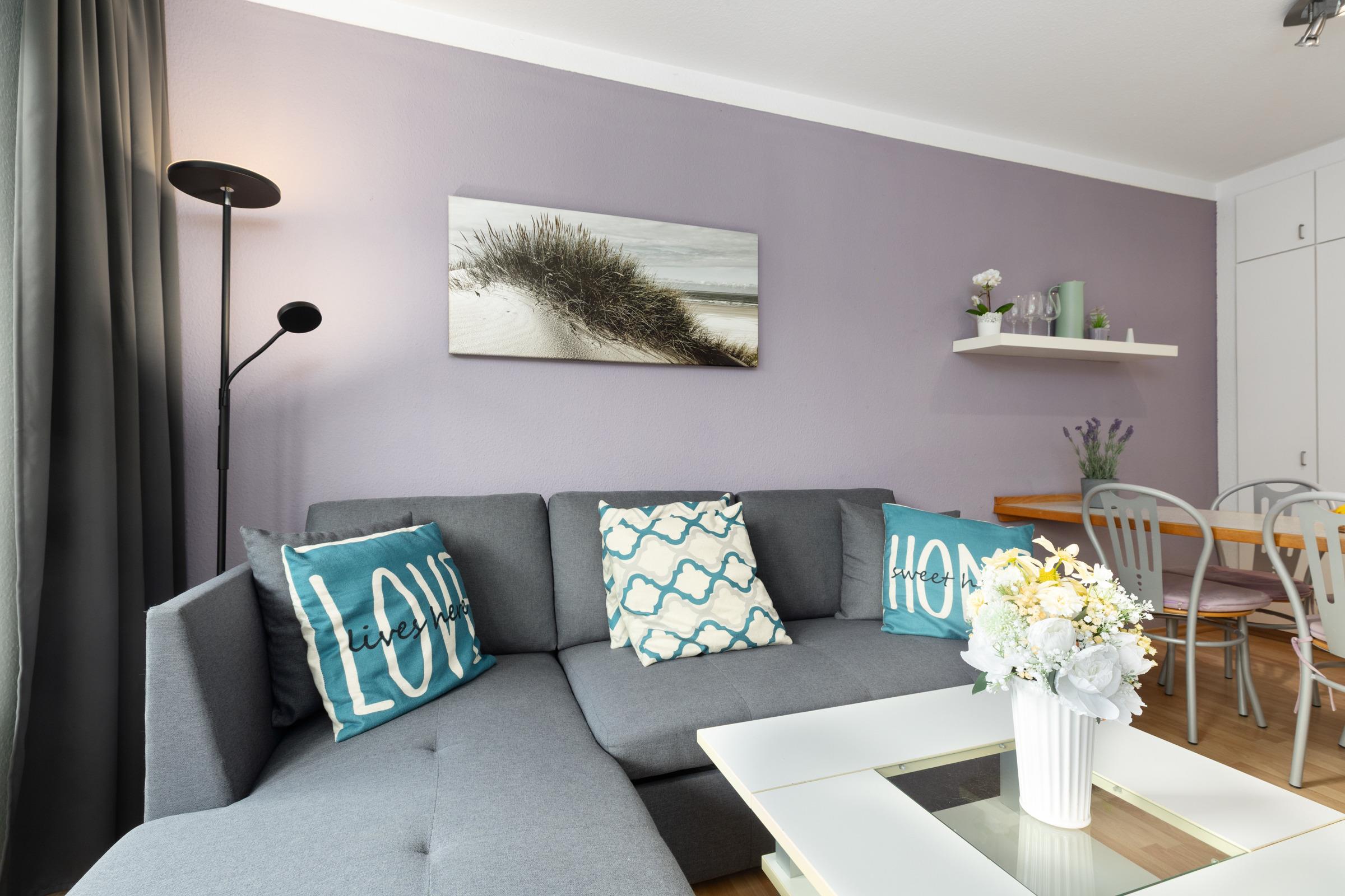 Das 2-Zimmer-Appartement für bis zu 4 Personen befindet sich im Erdgeschoss des Appartementhauses Panorama am Schönberger Strand. Das Panorama steht direkt hinter dem Deich und der Promenade.