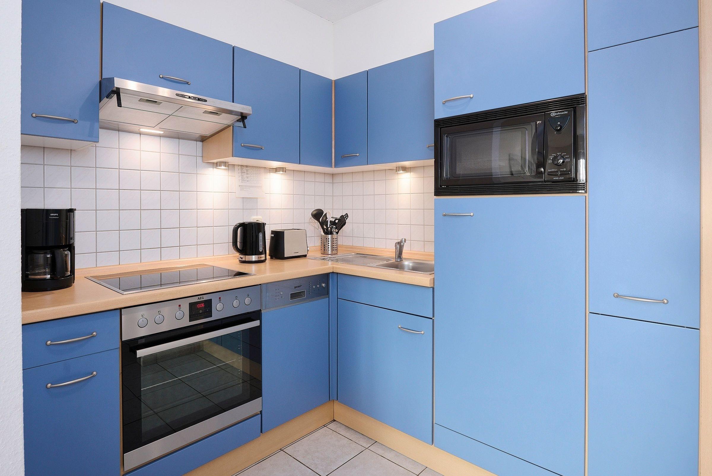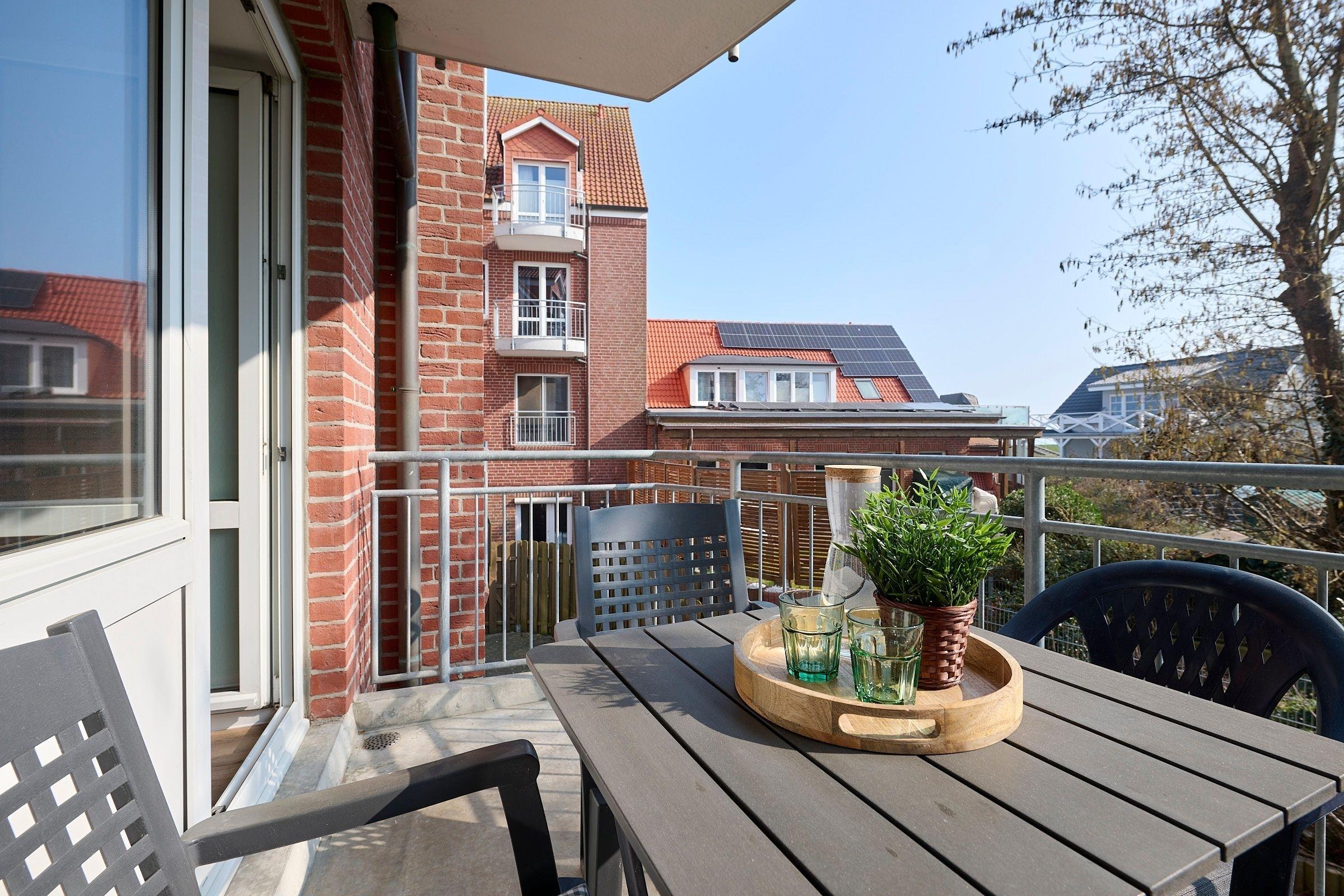 Vom Wohnzimmer haben Sie einen direkten Zugang auf den Balkon, auf dem Sie die Sonne bis zum frühen Nachmittag genießen können. Das Schlafzimmer ist mit einem Doppelbett, großem Kleiderschrank und einem zusätzlichen TV-Wandgerät ausgestattet.