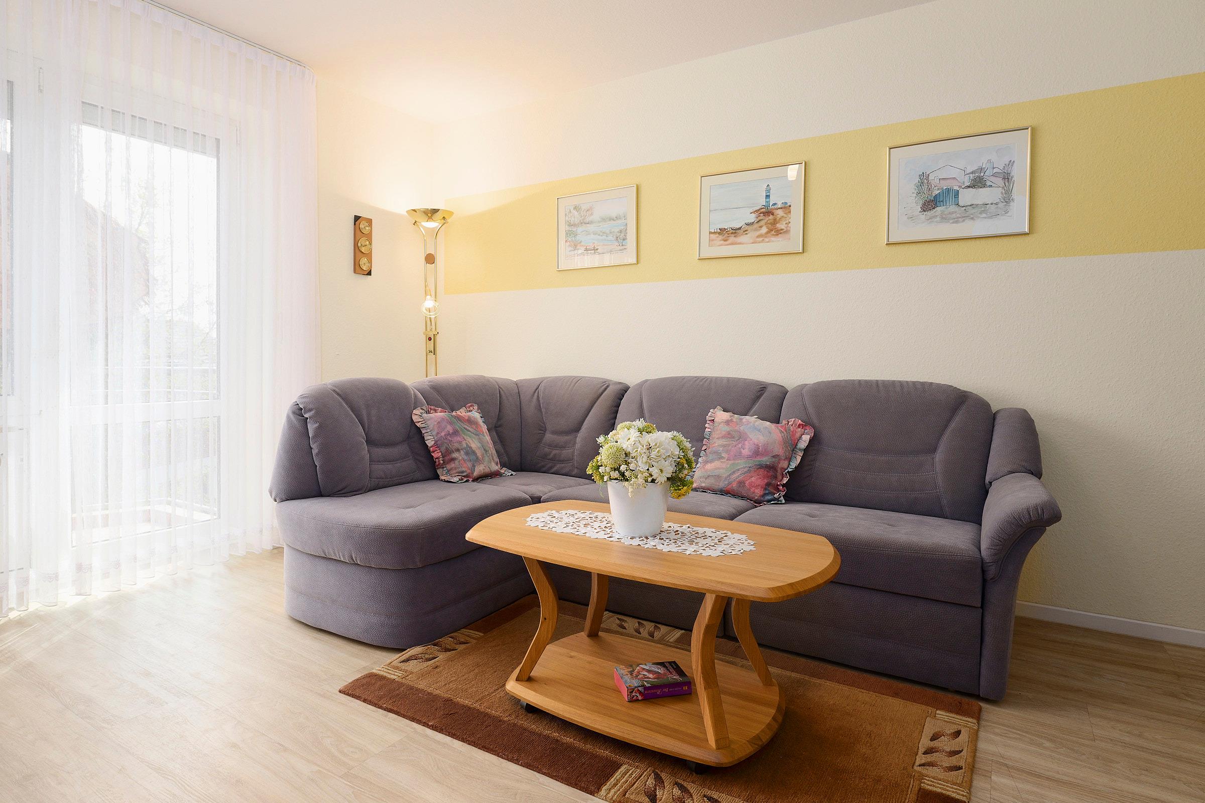 Auf 48 m² verteilen sich Wohn-/Essbereich, ein separates Schlafzimmer, eine Einbauküche und ein Duschbad. Vom Wohnzimmer haben Sie einen direkten Zugang auf den Balkon. Genießen Sie hier auf dem Balkon die Sonne bis zum frühen Nachmittag. Das Schlafzimmer ist mit einem Doppelbett, großem Kleiderschrank, 2 Nachttischen und Leselampen ausgestattet.