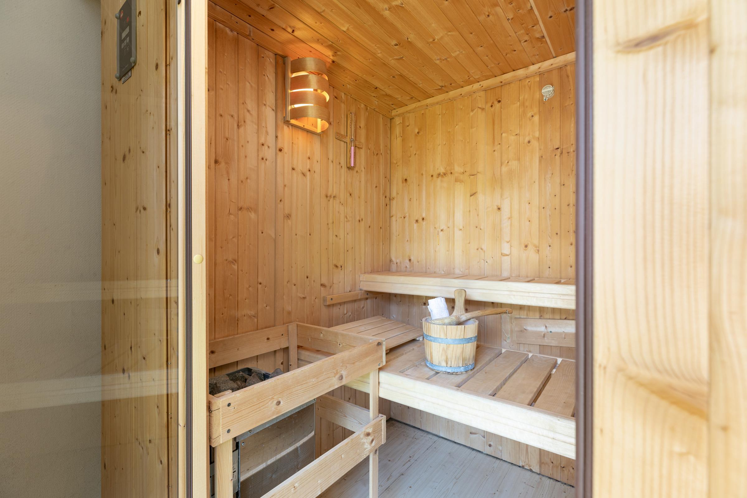 Herrlich relaxen können Sie mit bis zu 4 Personen im Saunahaus (Sauna mit Dampfbad) mit Ruhebereich, TV und Duschbad (mit Fußbodenheizung).