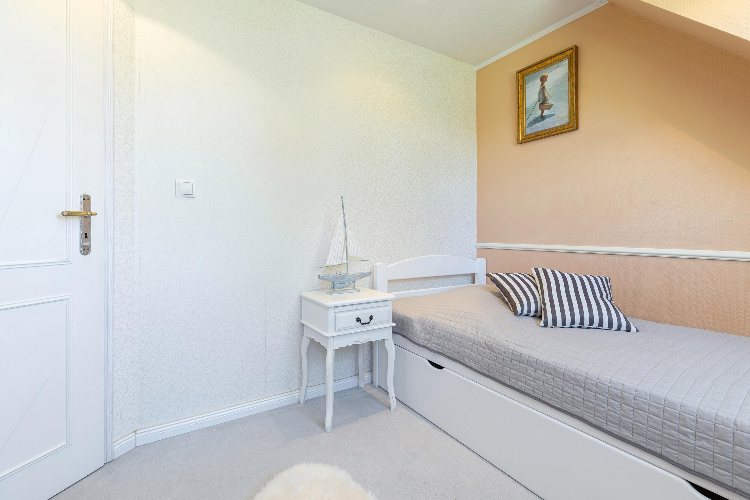 Schlafzimmer 3: 1 Einzelbett, TV, Verdunkelung: Außenrollläden